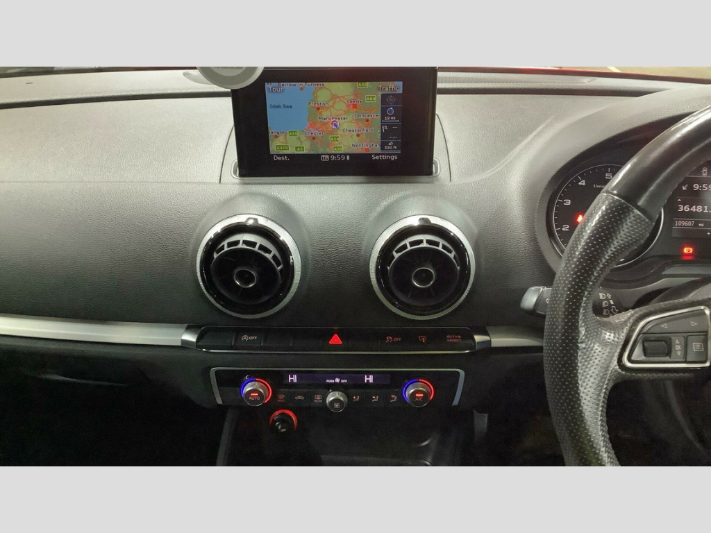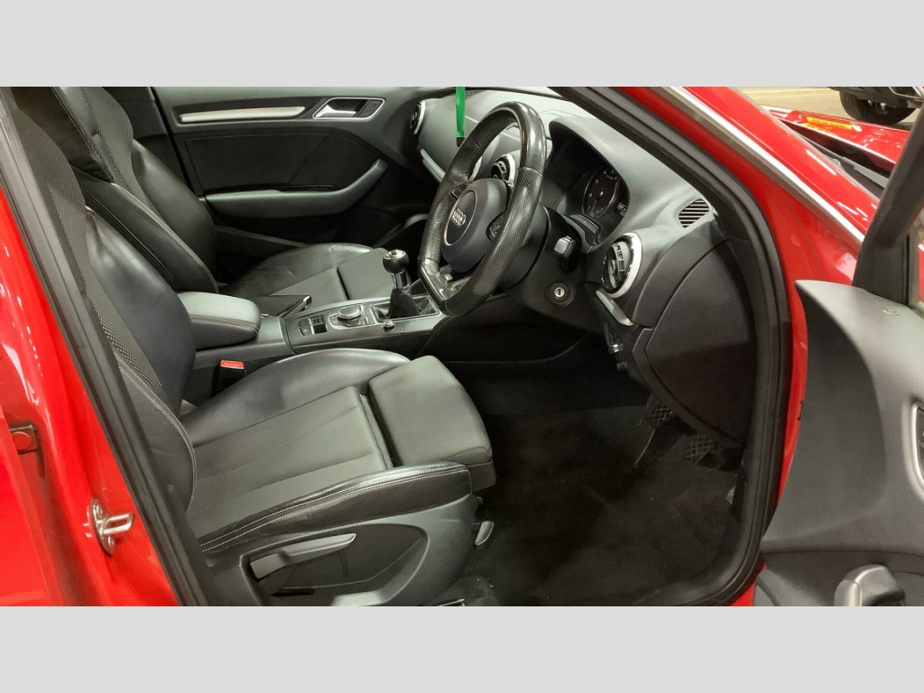 This 2014 Audi A3 TFSI S line offers an exceptional ownership history, having been cared for by only two owners. This popular hatchback is equipped with a 1.4 litre petrol engine and meets the Euro 6 emission standards. Inside, you'll find dual zone electronic climate control for personalised comfort, and the convenience of Bluetooth mobile telephone preparation. For enhanced visibility, it features Bi-Xenon Plus headlights.The Audi A3 TFSI S line demonstrates impressive efficiency, achieving a remarkable 59 miles per gallon, which is significantly better than many other vehicles in its class. Its low CO2 emissions also contribute to its economical running costs. You'll appreciate the generous boot space, making it practical for everyday use and longer journeys. Furthermore, its acceleration is brisk, capable of reaching 0 to 62 miles per hour in just 8.4 seconds, offering a responsive driving experience. v power socket - centre console, 12v power socket - rear, 18in alloy wheels - 5-parallel spoke design partly polished, abs - anti-lock braking system, ami - audi music interface, asr - anti slip regulation, active bonnet, adaptive brake lights, air vent sleeves - aluminium look, airbags - driver, airbags - drivers knee, airbags - front passenger, airbags - front side, airbags - head level side for front and rear, alarm - thatcham category 1, aluminium interior elements, anti theft locking wheel bolts, audi drive select, car jack, chrome-plated exhaust tailpipe trim, cloth headlining in black, coat hooks - b pillar - both sides, colour drivers information system - dis, cup holders - rear x2, cup holders - x2 in centre console, dab digital radio, daytime running lights, display screen colour - 5.8in, door mirrors - body coloured with integrated led indicators, door mirrors - electrically adjustable and heated, door sill trims with s line logo, dual-zone electronic climate control, ebd - electronic brakeforce distribution, edl - electronic differential lock, esp - electronic stability programme, electric windows - front and rear, electromechanical parking brake, electromechanical power steering, exhaust tailpipe - twin, first aid kit, fog lights - high gloss black surrounds, front centre armrest, front fog lights, front passenger airbag deactivation switch, front sports seats, front and rear floor mats, gear knob - perforated leather, halogen headlights, headlights - automatic dynamic range control, headlights - bi-xenon plus, headlights washers, heated rear windscreen, heated windscreen washer jets, height adjustable boot floor, hydraulic brake assist, isofix child seat mounting for front passenger and rear outer seats, illuminated vanity mirrors, inlays - matt brushed aluminium, interior lighting, led daytime running lights, led rear indicators, led rear lights, luggage compartment - lashing points x4, luggage compartment - side net, mmi radio, mobile telephone preparation - bluetooth interface, multi collision brake assist, preparation for sd card-based navigation system, radiator grille - high gloss black, rear parcel shelf removable, remote central locking with 2 fold away keys, rest recommendation system, roof spoiler - painted in body colour with aerodynamic inserts in high-gloss black at the side, s line badges on wings, s line body styling, s line design front and rear bumpers side grilles and dffusers in platinum grey, s line design front bumper-rear diffuser-side sills and roof spoiler, sdhc card reader x2, seat belt reminder for all seats, seats - convenience entry - enhanced front folding function, seats - front height adjustment, seats - split folding rear - 60-40, secondary collision brake assist, smoking package, space saver spare wheel, speakers x8, spoiler - body coloured, spoiler - roof, sport suspension, steering wheel - height and reach adjustable, steering wheel - multi-function, steering wheel - multifunction - flat bottomed, storage compartment under rear seat, storage compartments in the door side trims-centre console-under front passenger seat, storage net in front passenger footwell and front seat backrests, storage and luggage package, sun visors - with covered vanity mirrors, tool kit, usb connection, voice control - navigation, warning triangle, washer fluid level indicator, window surrounds - aluminium
