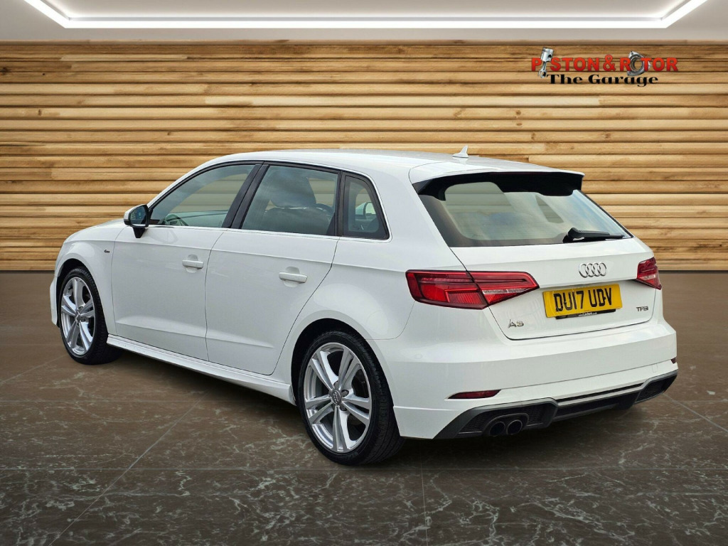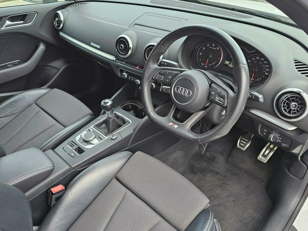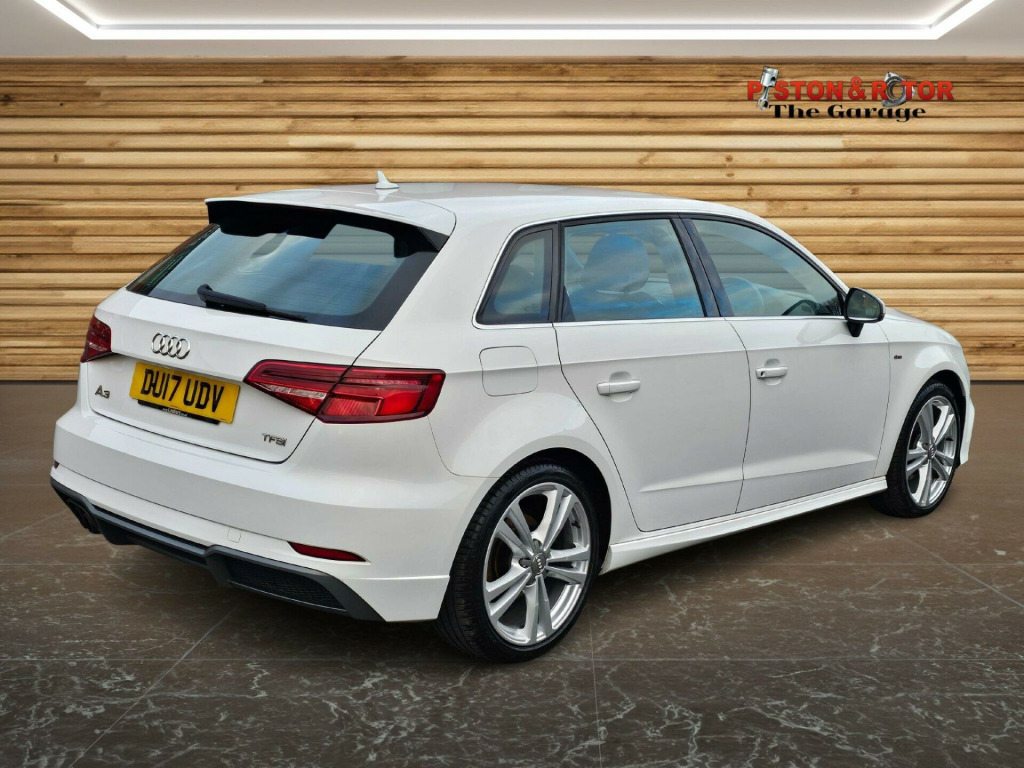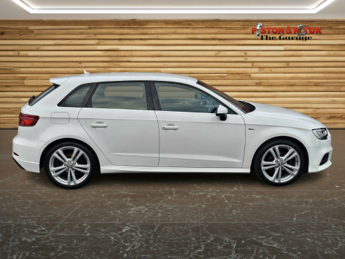 THIS STUNNING A3 S-LINE SPORTBACK AUTOMATIC COMES WITH A GOOD SERVICE HISTORY AND IS PRESENTED IN WHITE, COMPLEMENTED BY 18'' MULTI-SPOKE DIAMOND CUT ALLOY WHEELS. THE ECONOMICAL 1.4 TFS ENGINE IS CONNECTED TO A MANUAL GEARBOX MAKING FOR A SMOOTH DRIVING EXPERIENCE WHETHER IN TOWN OR ON THE MOTORWAY WITH THE ADDED FEATURE OF 'AUDI DRIVE SELECT' TO CHANGE DRIVING MODES FROM ECO TO SPORTY DEPENDING ON THE CONDITIONS. THE INTERIOR CONTAINS COMFORTABLE CHARCOAL GREY PART LEATHER SEATS GREY WITH PATTERNED CLOTH SEAT BASES WITH ILLUMINATED DOOR SILL TRIMS ON OPENING THE DOORS. THE MULTI-FUNCTION LEATHER TRIMMED STEERING WHEEL COMPLEMENTS THE CHROME AND LEATHER TRIMMED GEAR SELECTOR AND IN CAR ENTERTAINMENT IS PROVIDED VIA THE 7'' RETRACTABLE MULTI-MEDIA SCREEN WHICH ALSO GIVES ACCESS TO ON-BOARD COMPUTER, CAR SETUP, BLUETOOTH TELEPHONE AND DAB RADIO, PLUS MEDIA STREAMING AND FOR SD CARD BASED SAT NAV. FURTHER FEATURES INCLUDE AIR CONDITIONING, CRUISE CONTROL, LED HEADLIGHTS AND REAR LIGHTS WITH REAR DYNAMIC INDICATORS. THERE ARE ALSO PLENTY OF SAFETY FEATURES WITH MORE YET TO BE DISCOVERED. WE HAVE FULLY INSPECTED AND SERVICED THIS CAR, SO THE ONLY ISSUE FOR ITS NEW OWNER WILL BE WHERE THE NEXT TRIP SHOULD BE. PLEASE CALL 0161 761 3452 (OPTION 2) TO ARRANGE A VIEWING, TO RESERVE THE CAR OR FOR MORE INFORMATION. WHILST EVERY EFFORT HAS BEEN MADE TO ENSURE THAT THE STATED SPECIFICATION IS ACCURATE, PLEASE CHECK WITH A MEMBER OF THE SALES TEAM IF A PARTICULAR SPECIFICATION/FEATURE IS IMPORTANT TO YOU.. 18in Alloy Wheels - 5-Parallel Spoke Design with Diamond Cut Finish, 2 x USB Charging Ports and 1 x AUX-IN, 6-Airbag System with Knee Airbag for Driver, 8 Passive Speakers, Aluminium Interior Elements, Aluminium Window Trims, Anti Theft Locking Wheel Bolts, Anti-Theft Alarm, Audi Connect Infotainment Services - 3 Month Trial, Audi Drive Select, Audi Smartphone Interface, Bluetooth Interface, Body Coloured Door Mirrors, CD Drive, Chrome-Plated Exhaust Tailpipe Trim, Cloth Headlining in Black, Colour Drivers Information System - DIS, Cruise Control, DAB Digital Radio, Door Mirrors - Electrically Adjustable and Heated, Dual-Zone Electronic Climate Control, ESC - Electronic Stabilisation Control inc ABS - ASR and EDL, Electric Windows - Front and Rear, Electromechanical Parking Brake, Electromechanical Power Steering, First Aid Kit, Front Centre Armrest, Front and Rear Floor Mats, ISOFIX Child Seat Mounting and Top Tether for Front Passenger and Outer Rear Seats, Illuminated Door Sill Trims with S Logo, Immobiliser, Inlays - Matt Brushed Aluminium, LED Headlights with LED Rear Lights and Dynamic Rear Indicators, LED Interior Light Package, Light and Rain Sensor, Luggage Compartment - Lashing Points x4, MMI Navigation - SD Card Based, MMI Radio Plus with 7in Electrically Retractable Colour MMI Screen, Manual Front Seat Adjustment, Non-Smoking Package, Pedals in Stainless Steel, Pollen Filter, Remote Central Locking with 2 Fold Away Keys, S Line Design Body Styling, S Line Roof Spoiler, Seat Belt Monitoring, Seats - Split Folding Rear - 60-40, Space Saver Spare Wheel, Sport Suspension, Steering Wheel - 3-Spoke Leather-Multifunction-Flat Bottomed, Storage Compartments in the Door Side Trims-Centre Console-Under Drivers Seat, Storage Package, Tool Kit and Car Jack, Tyre Pressure Monitoring System, Voice Control, Warning Triangle, 18in Alloy Wheels - 10-Spoke Design Matt Titanium Look with Diamond Cut Finish, Privacy Glass, Fine Nappa Leather - S Embossed Sports Seats - Black with Rock Grey Stitching, S Line Sports Suspension.