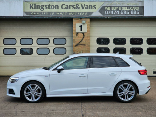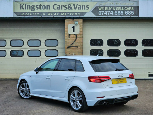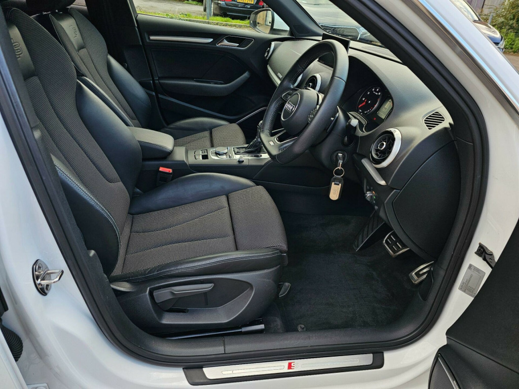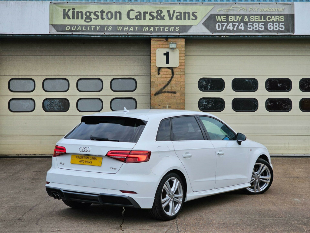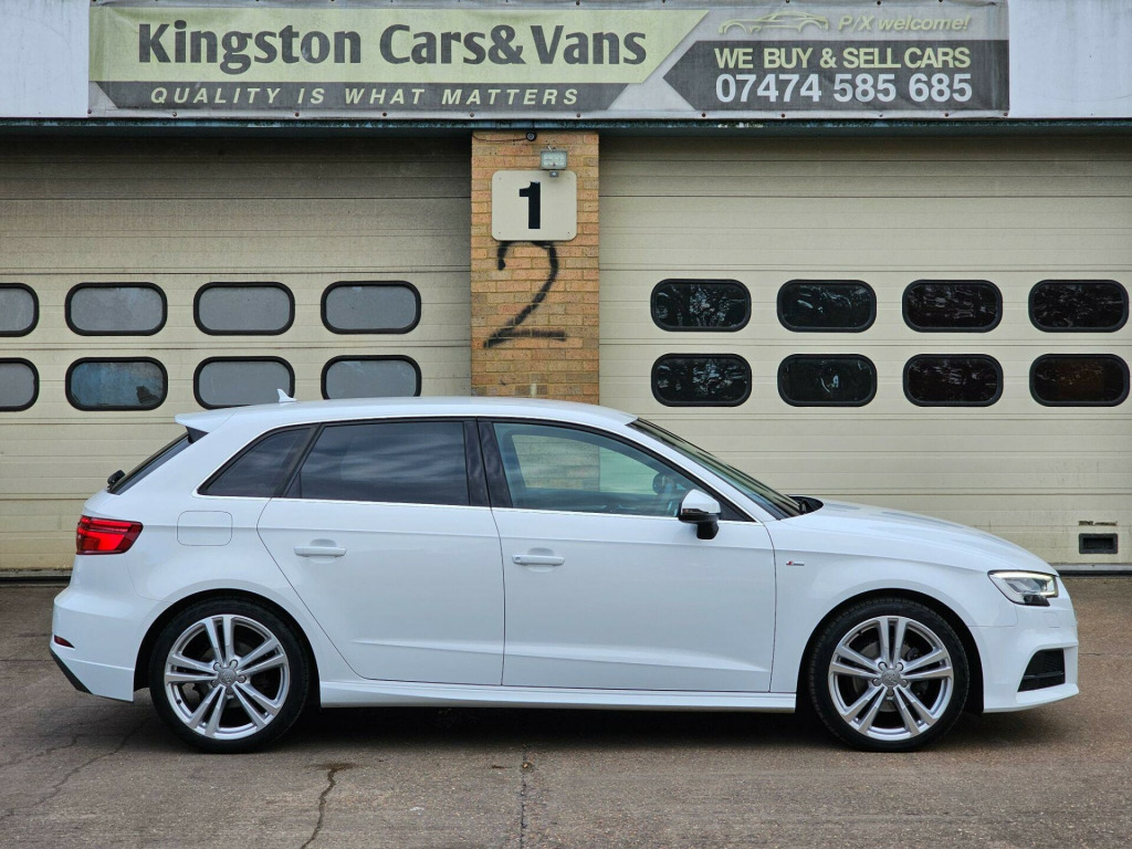 Car sold now!Kingston cars and Vans present this nice and clean Audi A3 1.4l TFSI CoD S Line Sportback S Tronic Euro 6 (s/s) 5dr , genuine mileage and excellent 1.4l TFSI engine, Full Audi Service History until 05/2025 and One from independent garage ,Last service done 50 miles ago from us include (Oil, Oil filter ,Air filter ,Cabin Filter, NEW Timing Belt and service on Automatic gearbox ,we present invoices for parts and labour ) ,Long MOT until November/2026, Very stylish A3 1.4l with wonderful colour, Fantastic engine & Automatic gearbox with paddle shifts ! Finished in stunning Ibis White Metallic with Black Sequence cloth/leather with Rock grey stitching S Line ,Brushed Aluminium dashboard trim. Spec includes: Fully Refurbished 18'' 5 Double Arm S Line alloy wheels with four very good tires, Rear Camera, Rear Parking Sensors,Flat Bottom Sports leather multifunction steering wheel, Audi Navigation MMI ,Bang and Olufsen Sound System, Bluetooth telephone preparation ,Car Apple Play, Multimedia Dab radio/ 2 USB ports / Aux ,Matrix Led Headlights with LED Daytime Running Lights, Stability and traction control , Cruise Control, Audi Thatcham Category 1 alarm and immobiliser, Electric windows, Dual zone electronic climate control with Separate Air Distribution and Digital Display, Electrically Adjustable/ Heated door mirrors, Remote central locking, Tool kit, spare wheel, all documents and user handbooks. Covered just 58K genuine miles with Full Service History , vehicle is completely original and unmodified ,Excellent exterior condition, nice and clean non smoking interior ,Powerful and economical 1.4l TFSI engine with 150 Bhp ,Vehicle can return 67 MPG on a long run and drives superbly, Road tax cost £35 for 12 months and can be purchased online ,HPI Checked and clear with certificate, 3 months parts and labor Warranty by Autoguard Warranty included in the price, P/X welcome, Finance available ,Viewing by appointment so please call or mail us, for more stock please visit our website-www.kingstoncarsandvans.co.uk line sports suspension, auto-dimming rear-view mirror, comfort and sound package, heated front seats, bang and olufsen sound system, rear parking sensors, rear-view camera, audi hill hold assist, headlights washers, matrix led exterior lighting pack, rear side airbags, privacy glass, inlays - matt brushed aluminium - illuminated design, sequence cloth-leather - s embossed sports seats - black with rock grey stitching, 18in alloy wheels - 5-parallel spoke design with diamond cut finish, 2 x usb charging ports and 1 x aux-in, 6-airbag system with knee airbag for driver, 8 passive speakers, aluminium interior elements, aluminium window trims, anti theft locking wheel bolts, anti-theft alarm, audi connect infotainment services - 3 month trial, audi drive select, audi smartphone interface, bluetooth interface, body coloured door mirrors, cd drive, chrome-plated exhaust tailpipe trim, cloth headlining in black, colour drivers information system - dis, cruise control, dab digital radio, door mirrors - electrically adjustable and heated, dual-zone electronic climate control, esc - electronic stabilisation control inc abs - asr and edl, electric windows - front and rear, electromechanical parking brake, electromechanical power steering, first aid kit, front centre armrest, front and rear floor mats, isofix child seat mounting and top tether for front passenger and outer rear seats, illuminated door sill trims with s logo, immobiliser, inlays - matt brushed aluminium, led headlights with led rear lights and dynamic rear indicators, led interior light package, light and rain sensor, luggage compartment - lashing points x4, mmi navigation - sd card based, mmi radio plus with 7in electrically retractable colour mmi screen, manual front seat adjustment, non-smoking package, pedals in stainless steel, pollen filter, remote central locking with 2 fold away keys, s line design body styling, s line roof spoiler, seat belt monitoring, seats - split folding rear - 60-40, space saver spare wheel, sport suspension, steering wheel - 3-spoke leather-multifunction-flat bottomed-shift paddles, storage compartments in the door side trims-centre console-under drivers seat, storage package, tool kit and car jack, tyre pressure monitoring system, voice control, warning triangle