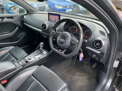 Cars Yard is delighted to present this stunning Audi A3 ((((((***FREE 6 MONTHS WARRANTY + 12 MONTHS FREE AA BREAKDOWN COVER ****))))) USED BY TWO FORMER KEEPERS, FULL SERVICE HISTORY, GREAT CONDITION IN AND OUT ***Excellent condition*** 5 Day Driveaway Insurance at Additional cost available for cars up to 10 years old STS, FINANCE AVAILABLE, CALL US ON 02045392878. AA Approved Dealer, FCA registered Dealer. 12V Power Socket - Centre Console, 12V Power Socket - Rear, 18in Alloy Wheels - 5-Parallel Spoke Design Partly Polished, ABS - Anti-Lock Braking System, AMI - Audi Music Interface, ASR - Anti Slip Regulation, Active Bonnet, Adaptive Brake Lights, Air Vent Sleeves - Aluminium Look, Airbags - Driver, Airbags - Drivers Knee, Airbags - Front Passenger, Airbags - Front Side, Airbags - Head Level Side For Front and Rear, Alarm - Thatcham Category 1, Aluminium Interior Elements, Anti Theft Locking Wheel Bolts, Audi Drive Select, Car Jack, Chrome-Plated Exhaust Tailpipe Trim, Cloth Headlining in Black, Coat Hooks - B Pillar - Both Sides, Colour Drivers Information System - DIS, Cup Holders - Rear x2, Cup Holders - x2 in Centre Console, DAB Digital Radio, Daytime Running Lights, Display Screen Colour - 5.8in, Door Mirrors - Body Coloured with Integrated LED Indicators, Door Mirrors - Electrically Adjustable and Heated, Door Sill Trims with S Line Logo, Dual-Zone Electronic Climate Control, EBD - Electronic Brakeforce Distribution, EDL - Electronic Differential Lock, ESP - Electronic Stability Programme, Electric Windows - Front and Rear, Electromechanical Parking Brake, Electromechanical Power Steering, Exhaust Tailpipe - Twin, First Aid Kit, Fog Lights - High Gloss Black Surrounds, Front Centre Armrest, Front Fog Lights, Front Passenger Airbag Deactivation Switch, Front Sports Seats, Front and Rear Floor Mats, Gear Knob - Perforated Leather, Headlights - Automatic Dynamic Range Control, Headlights - Bi-Xenon Plus, Headlights Washers, Heated Rear Windscreen, Heated Windscreen Washer Jets, Height Adjustable Boot Floor, Hydraulic Brake Assist, ISOFIX Child Seat Mounting for Front Passenger and Rear Outer Seats, Illuminated Vanity Mirrors, Inlays - Matt Brushed Aluminium, Interior Lighting, LED Daytime Running Lights, LED Rear Indicators, LED Rear Lights, Luggage Compartment - Lashing Points x4, Luggage Compartment - Side Net, MMI Radio, Mobile Telephone Preparation - Bluetooth Interface, Model and Engine Technology Badges at Rear, Multi Collision Brake Assist, Preparation for SD Card-Based Navigation System, Radiator Grille - High Gloss Black, Rear Parcel Shelf Removable, Remote Central Locking with 2 Fold Away Keys, Rest Recommendation System, S Line Badges on Front Wings, S Line Body Styling, S Line Design Front and Rear Bumpers Side Grilles and Dffusers in Platinum Grey, S line Design Front Bumper-Rear Diffuser-Side Sills and Roof Spoiler, SDHC Card Reader x2, Seat Belt Reminder for All Seats, Seats - Convenience Entry - Enhanced Front Folding Function, Seats - Front Height Adjustment, Seats - Split Folding Rear - 60-40, Secondary Collision Brake Assist, Smoking Package, Space Saver Spare Wheel, Speakers x8, Sport Suspension, Steering Wheel - 3-Spoke Leather-Flat Bottomed-Shift Paddles, Steering Wheel - Height and Reach Adjustable, Steering Wheel - Multi-function, Storage Compartment Under Rear Seat, Storage Compartments in the Door Side Trims-Centre Console-Under Front Passenger Seat, Storage Net in Front Passenger Footwell and Front Seat Backrests, Storage and Luggage Package, Sun Visors - with Covered Vanity Mirrors, Tool Kit, Tyre Pressure Monitoring System, USB Connection, Voice Control - Navigation, Warning Triangle, Washer Fluid Level Indicator, Window Surrounds - Aluminium, Cruise Control, Electrically Adjustable Front Seats, Fine Nappa Leather - Black, Rear-View Camera, Audi Parking System Plus with Park Assist, Satellite Navigation System - SD Card Based, Heated Front Seats. Full service history