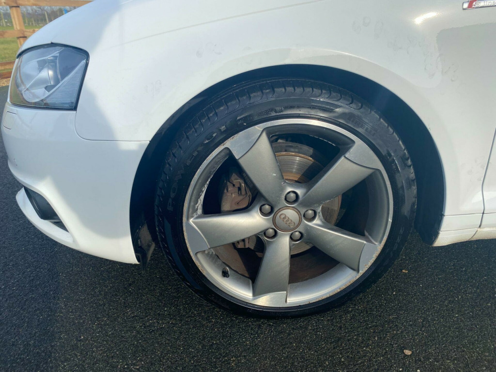 . 12V Power Socket - Centre Console, 12V Power Socket - Rear, 18in Alloy Wheels - 5-Parallel Spoke Design Partly Polished, ABS - Anti-Lock Braking System, AMI - Audi Music Interface, ASR - Anti Slip Regulation, Active Bonnet, Adaptive Brake Lights, Air Vent Sleeves - Aluminium Look, Airbags - Driver, Airbags - Drivers Knee, Airbags - Front Passenger, Airbags - Front Side, Airbags - Head Level Side For Front and Rear, Alarm - Thatcham Category 1, Aluminium Interior Elements, Anti Theft Locking Wheel Bolts, Audi Drive Select, Car Jack, Chrome-Plated Exhaust Tailpipe Trim, Cloth Headlining in Black, Coat Hooks - B Pillar - Both Sides, Colour Drivers Information System - DIS, Cup Holders - Rear x2, Cup Holders - x2 in Centre Console, DAB Digital Radio, Daytime Running Lights, Display Screen Colour - 5.8in, Door Mirrors - Body Coloured with Integrated LED Indicators, Door Mirrors - Electrically Adjustable and Heated, Door Sill Trims with S Line Logo, Dual-Zone Electronic Climate Control, EBD - Electronic Brakeforce Distribution, EDL - Electronic Differential Lock, ESP - Electronic Stability Programme, Electric Windows - Front and Rear, Electromechanical Parking Brake, Electromechanical Power Steering, Exhaust Tailpipe - Twin, First Aid Kit, Fog Lights - High Gloss Black Surrounds, Front Centre Armrest, Front Fog Lights, Front Passenger Airbag Deactivation Switch, Front Sports Seats, Front and Rear Floor Mats, Gear Knob - Perforated Leather, Halogen Headlights, Headlights - Automatic Dynamic Range Control, Headlights - Bi-Xenon Plus, Headlights Washers, Heated Rear Windscreen, Heated Windscreen Washer Jets, Height Adjustable Boot Floor, Hydraulic Brake Assist, ISOFIX Child Seat Mounting for Front Passenger and Rear Outer Seats, Illuminated Vanity Mirrors, Inlays - Matt Brushed Aluminium, Interior Lighting, LED Daytime Running Lights, LED Rear Indicators, LED Rear Lights, Luggage Compartment - Lashing Points x4, Luggage Compartment - Side Net, MMI Radio, Mobile Telephone Preparation - Bluetooth Interface, Multi Collision Brake Assist, Preparation for SD Card-Based Navigation System, Radiator Grille - High Gloss Black, Rear Parcel Shelf Removable, Remote Central Locking with 2 Fold Away Keys, Rest Recommendation System, Roof Spoiler - Painted in Body Colour with Aerodynamic Inserts in High-Gloss Black at the Side, S Line Badges on Wings, S Line Body Styling, S Line Design Front and Rear Bumpers Side Grilles and Dffusers in Platinum Grey, S line Design Front Bumper-Rear Diffuser-Side Sills and Roof Spoiler, SDHC Card Reader x2, Seat Belt Reminder for All Seats, Seats - Convenience Entry - Enhanced Front Folding Function, Seats - Front Height Adjustment, Seats - Split Folding Rear - 60-40, Secondary Collision Brake Assist, Smoking Package, Space Saver Spare Wheel, Speakers x8, Spoiler - Body Coloured, Spoiler - Roof, Sport Suspension, Steering Wheel - 3-Spoke Leather-Flat Bottomed-Shift Paddles, Steering Wheel - Height and Reach Adjustable, Steering Wheel - Multi-function, Storage Compartment Under Rear Seat, Storage Compartments in the Door Side Trims-Centre Console-Under Front Passenger Seat, Storage Net in Front Passenger Footwell and Front Seat Backrests, Storage and Luggage Package, Sun Visors - with Covered Vanity Mirrors, Tool Kit, USB Connection, Voice Control - Navigation, Warning Triangle, Washer Fluid Level Indicator, Window Surrounds - Aluminium.