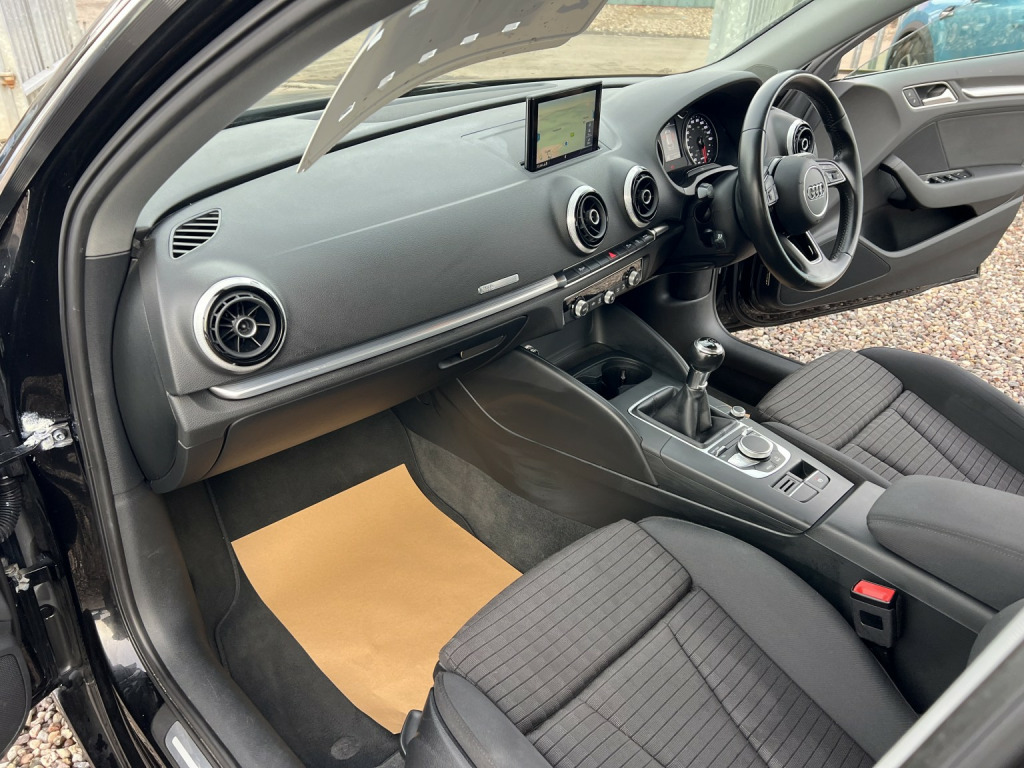 ????2016 66 AUDI A3 1.4 TSFI PETROL SPORT 5DR 76,000 MILES F/S/H/£8,995, GREAT EXAMPLE IN MATALIC BLACK WITH FULL SERVICE HISTORY AND 2 X KEYS/SAT NAV/, 3rd brake light, Anti-lock Brake System (ABS), Electronic Stability Program (ESP), One touch indicator, Power assisted brakes,aux, Tyre pressure monitor, Check control system, Configurable dashboard display, Service interval indicator, Steering wheel audio controls, Tool kit, Travel data recorder, Trip computer,/Power Assisted Steering, Rev counter,Traction control, Digital radio, Radio/CD, USB input, Body coloured bumpers, Rear boot, Air conditioning, Front head restraints, Front interior 12V power outlet,Steering wheel manually adjustable,Steering wheel rake adjustment, Steering wheel reach adjustment, Leather gear selector trim, Leather interior door trim, Leather steering wheel,3x3 point rear seat belts,Active front head restraints, Drivers airbag, Isofix child seat anchor points, Manual child proof locks, Passenger airbag, Height adjustable drivers seat, Lumbar support, Alarm,LED day time running lights/XENON HEAD LIGHT/Central locking, Immobiliser,,Remote central locking, Front electric windows, Rear wiper/76,000miles f/s/h/comes with 12 month mot and full engine service/6 months warranty/finance available,delivery can be arranged/buy with confidence,read our 5star reviews,ms car sales Cupar ky154rd