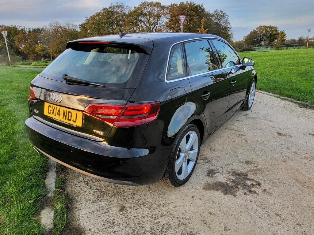 This 2014 Audi A3 1.4 TFSI CoD Sport Sportback 5dr Petrol S Tronic Euro 6 (s/s) (140 ps) hatchback is a reliable and stylish vehicle with only 51000 miles on the clock with service history, Finished in metallic black with black cloth interior, Powered by a petrol engine, it comes with 5 seats and 5 doors, making it a practical choice for families or commuters. With an MOT that expires on 08/04/2026 and ULEZ compliance, it offers peace of mind and flexibility for city driving. The car includes modern features such as 12V Power Socket, AMI - Audi Music Interface, DAB Digital Radio, Display Screen Colour - 5.8in, and MMI Radio, offering a comfortable and entertaining driving experience. Whether it's for daily use or weekend getaways, this Audi A3 is a great option for those seeking quality, performance, and efficiency. Finance & warranty packages available. v power socket - centre console, ami - audi music interface, dab digital radio, display screen colour - 5.8in, mmi radio, mobile telephone preparation - bluetooth interface, preparation for sd card-based navigation system, sdhc card reader x2, speakers x8, usb connection, 17in alloy wheels - 5-arm design, anti theft locking wheel bolts, chrome-plated exhaust tailpipe trim, door mirrors - body coloured with integrated led indicators, door mirrors - electrically adjustable and heated, electric windows - front and rear, exhaust tailpipe - twin, fog lights - chrome surrounds, heated rear windscreen, heated windscreen washer jets, roof spoiler - painted in body colour with aerodynamic inserts in high-gloss black at the side, space saver spare wheel, spoiler - body coloured, spoiler - roof, window surrounds - aluminium, abs - anti-lock braking system, asr - anti slip regulation, active bonnet, adaptive brake lights, airbags - driver, airbags - drivers knee, airbags - front passenger, airbags - front side, airbags - head level side for front and rear, alarm - thatcham category 1, ebd - electronic brakeforce distribution, esp - electronic stability programme, electromechanical parking brake, first aid kit, front passenger airbag deactivation switch, hydraulic brake assist, isofix child seat mounting for front passenger and rear outer seats, multi collision brake assist, remote central locking with 2 fold away keys, seat belt reminder for all seats, secondary collision brake assist, warning triangle, air vent sleeves - aluminium look, aluminium interior elements, car jack, cloth headlining, coat hooks - b pillar - both sides, cup holders - rear x2, cup holders - x2 in centre console, door sill trims, dual-zone electronic climate control, front centre armrest, front sports seats, front and rear floor mats, height adjustable boot floor, inlays - aluminium mistral, interior lighting, luggage compartment - lashing points x4, rear parcel shelf removable, seats - convenience entry - enhanced front folding function, seats - front height adjustment, seats - split folding rear - 60-40, smoking package, steering wheel - 3-spoke leather - multi-function - sports, steering wheel - height and reach adjustable, steering wheel - multi-function, storage compartments in the door side trims-centre console-under front passenger seat, sun visors - with covered vanity mirrors, tool kit, audi drive select, colour drivers information system - dis, edl - electronic differential lock, electromechanical power steering, rest recommendation system, sport suspension, voice control - navigation, washer fluid level indicator, daytime running lights, front fog lights, halogen headlights