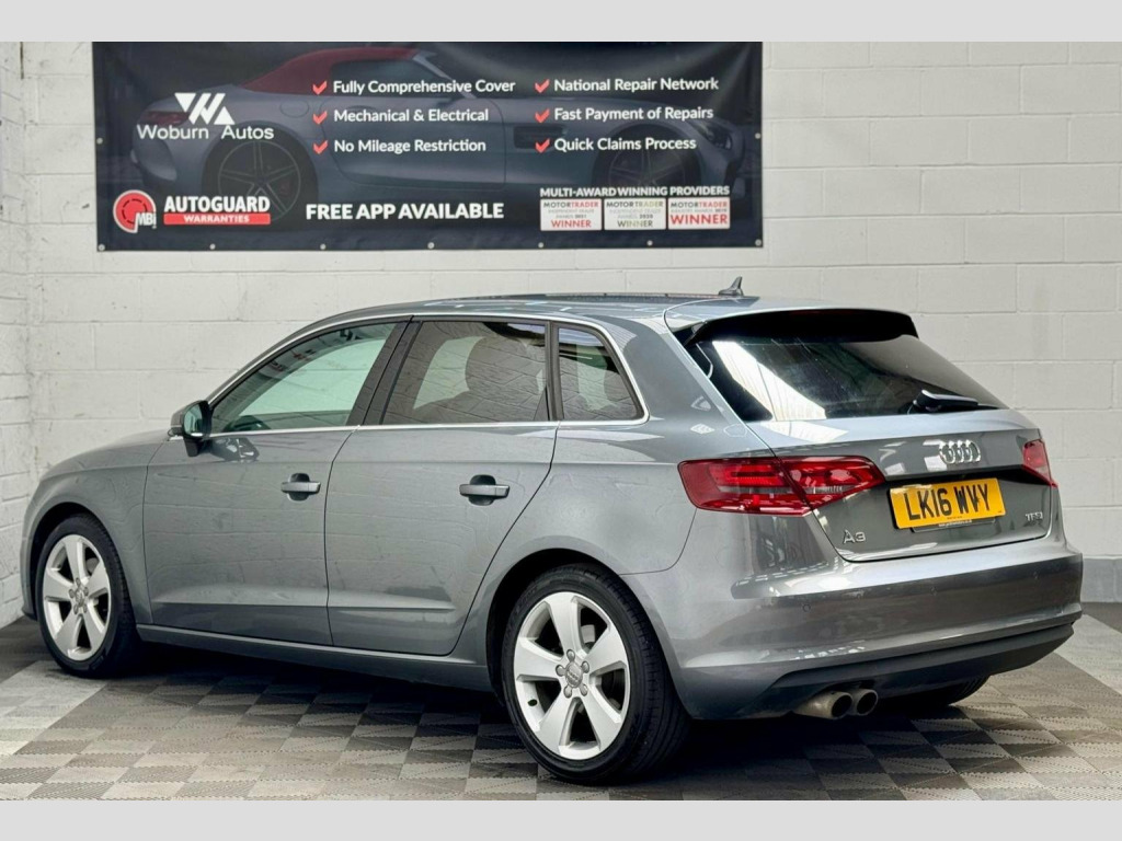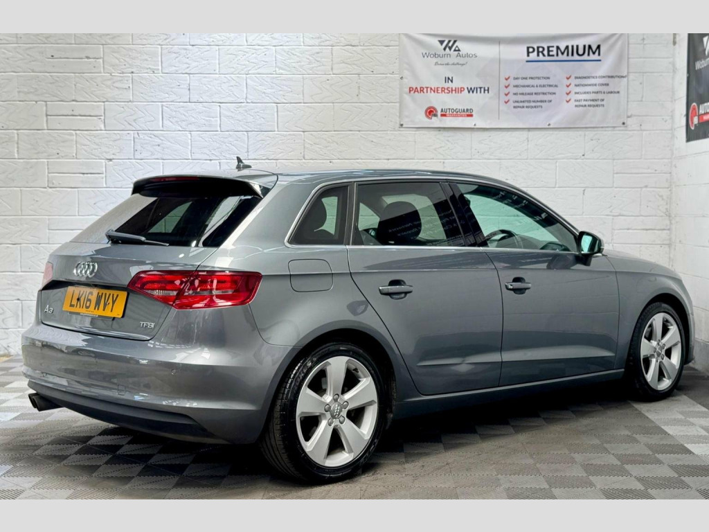 With only one previous owner, this 2016 Audi A3 1.4L Petrol TFSI Sport, in Sport trim, offers a compelling blend of style and efficiency. The vehicle is equipped with desirable features such as heated front seats for those chilly mornings. This A3 stands out with its impressive fuel  economy of 59 mpg, meaning fewer trips to the petrol station and more money in your pocket. The low CO2 emissions mean youll be contributing to a cleaner environment. Acceleration from 0-62mph in just 8.2 seconds delivers a sporty driving experience. The vehicle also boasts a large boot space, making it a practical choice for those who need ample room for luggage or shopping. , HPI CLEAR,2 KEYS, FINANCE AVAILABLE WITH £0 DEPOSIT AT COMPETITIVE RATES, PLEASE VISIT WWW.woburnautos.co.uk or CALL 01525868505, EXTENDED WARRANTY AVAILABLE ON ALL OUR CARS (3, 6, 12, 18, 24) , COMES WITH PREMIUM 3 MONTHS WARRANTY, MOT VALID TILL 10/03/2026 , SERVICE HISTORY, ONLY ONE PREVIOUS OWNER,ONLY £35 ROAD TAX PER YEAR,SATELLITE NAVIGATION,HEATED SEATS,REVERSE CAMERA,LEATHER SEATS,ULEZ FREE. SMOOTH ENGINE AND GEARBOX, CLEAN BODYWORK AS OF ITS AGE, CLEAN INTERIOR, CLEAN ALLOYS WITH GOOD TYRES, VIEWING RECOMMENDED, PART EX WELCOME, —————————————— WOBURN AUTOS IS TRUSTED AND LEADING USED CAR DEALERSHIP IN LEIGHTON BUZZARD. OUR VEHICLES ARE SUITABLE FOR ALL OUR CUSTOMERS NEEDS. FOR MORE INFO AND TO VIEW OUR STOCK PLEASE VISIT OUR WEBSITE WWW.WOBURNAUTOS.CO.UK —————————————— OUR WORKING HOURS ARE MONDAY TO SATURDAY 10AM TO 6PM AND ON SUNDAY 10AM TO 4:00PM. —————————————SOCIAL DISTANCING IN PRACTICE, BY APPOINTMENT ONLY,   ACCEPT ALL DEBIT/CREDIT CARDS,  p/x welcome