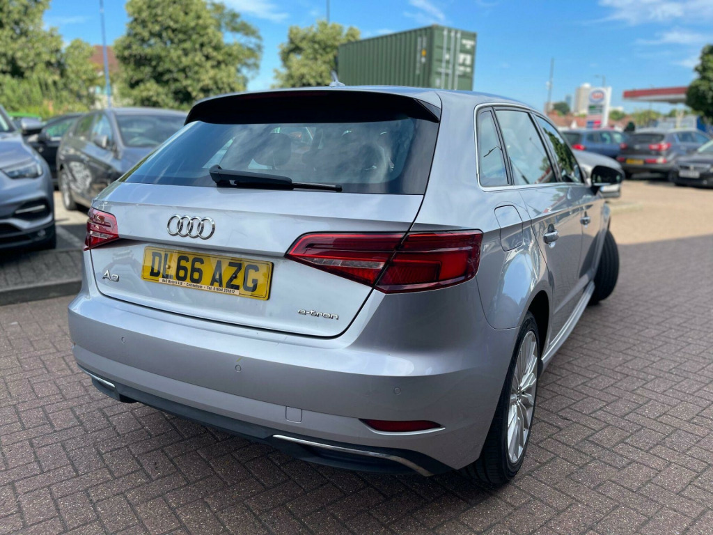 With a clear vehicle history check and 12 months MOT provided on purchase, this 2016 Audi A3 TFSI e-tron in e-tron trim offers peace of mind. This plug-in hybrid is powered by a 1.4L petrol engine and meets Euro 6 emission standards. The vehicle comes with a 6-month warranty for added reassurance. Convenience is enhanced with features such as the light and rain sensor, which includes automatic headlights, and rear parking sensors with parking assistance. The dual-zone electronic climate control ensures a comfortable environment, while the Bluetooth interface provides seamless connectivity. The advanced key system, including keyless entry, adds a touch of modern convenience.The Audi A3 e-tron stands out with its comprehensive suite of features designed for comfort and ease of use. The light and rain sensors automatically adjust to changing conditions, while the rear parking sensors simplify maneuvering in tight spaces. The dual-zone climate control allows both the driver and passenger to set their preferred temperatures, and the Bluetooth interface ensures you stay connected on the go. The advanced key system offers effortless entry and exit, making this Audi A3 a pleasure to drive and own. in alloy wheels - 15 spoke turbine design with diamond cut finish, 2 x usb charging points and 2 x sdxc card readers, 6-airbag system with knee airbag for driver, 8 passive speakers, advanced key, aluminium interior elements, aluminium window trims, anti theft locking wheel bolts, anti-theft alarm, audi active lane assist, audi connect infotainment services - 36 month trial, audi drive select, audi pre-sense front, audi smartphone interface, audi e-tron connected service, bluetooth interface, body coloured door mirrors, cd drive, colour drivers information system - dis, cruise control, dab digital radio, domestic charging cable, door mirrors - electrically adjustable and heated, door sill trims - aluminium with e-tron logo, dual-zone electronic climate control, dynamic suspension, esc - electronic stabilisation control inc abs - asr and edl, ev button - 4 driving modes, electric windows - front and rear, electromechanical parking brake, electromechanical power steering, first aid kit, front centre armrest, front and rear floor mats, headlights - high-beam assist, isofix child seat mounting and top tether for front passenger and outer rear seats, immobiliser, inlays - aluminium mistral silver, interior lighting, led headlights with led rear lights and dynamic rear indicators, light and rain sensor, luggage compartment - lashing points x4, mmi navigation plus including mmi touch, mmi radio plus with 7in electrically retractable colour mmi screen, manual front seat adjustment, non-smoking package, pollen filter, public charging cable, rear parking sensors, roof spoiler - painted in body colour with aerodynamic inserts in high-gloss black at the side, seat belt monitoring, seats - split folding rear - 60-40, steering wheel - 3-spoke leather - multi-function - sports - shift paddles, storage compartments in the door side trims-centre console-under drivers seat, tool kit and car jack, tyre pressure monitoring system, tyre repair kit, vehicle charging socket, voice control, warning triangle