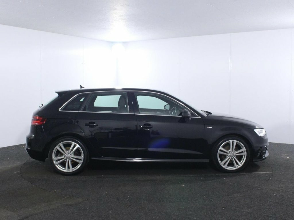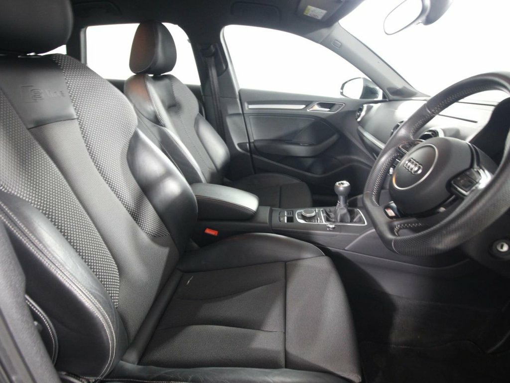2 Owners. Comprehensive service history with 9 services. Last serviced at 59,900 miles. The 2014 Audi A3 1.4 TFSI S line Sportback is a premium five-door hatchback that combines high-quality craftsmanship with efficient performance. Powered by a 1.4-litre turbocharged petrol engine producing 125 ps (123 bhp) and 200 Nm of torque, it is paired with a six-speed manual gearbox, achieving a 0–62 mph time of 9.3 seconds and a top speed of 128 mph. This Euro 6 compliant model is economical for its class, with an official combined fuel economy of 53.3 mpg, while real-world driving typically averages around 44–48 mpg. The S line trim is visually distinguished by 18-inch 5-parallel spoke design alloy wheels, aggressive S line body styling (including a roof spoiler and platinum grey diffuser), and Bi-Xenon Plus headlights with LED daytime running lights. The interior of this A3 Sportback features a driver-centric, high-end cabin with front sports seats, a black cloth headlining, and matt brushed aluminium inlays. Key interior features include a flat-bottomed multi-function leather steering wheel, dual-zone electronic climate control, and the MMI Radio system with a 5.8-inch colour display screen. For added convenience and connectivity, the car is equipped with Audi Music Interface (AMI), DAB digital radio, and Bluetooth mobile preparation. Safety is a priority, with the A3 featuring seven airbags, ISOFIX child seat mountings, and a suite of driver assistance technologies 12V Power Socket - Centre Console, 12V Power Socket - Rear, 18in Alloy Wheels - 5-Parallel Spoke Des, ABS - Anti-Lock Braking System, Active Bonnet, Adaptive Brake Lights, Air Vent Sleeves - Aluminium Look, Airbags - Driver, Airbags - Drivers Knee, Airbags - Front Passenger, Airbags - Front Side, Airbags - Head Level Side For Front and , Alarm - Thatcham Category 1, Aluminium Interior Elements, AMI - Audi Music Interface, Anti Theft Locking Wheel Bolts, ASR - Anti Slip Regulation, Audi Drive Select, Car Jack, Chrome-Plated Exhaust Tailpipe Trim, Cloth Headlining in Black, Coat Hooks - B Pillar - Both Sides, Colour Drivers Information System - DIS, Cup Holders - Rear x2, Cup Holders - x2 in C