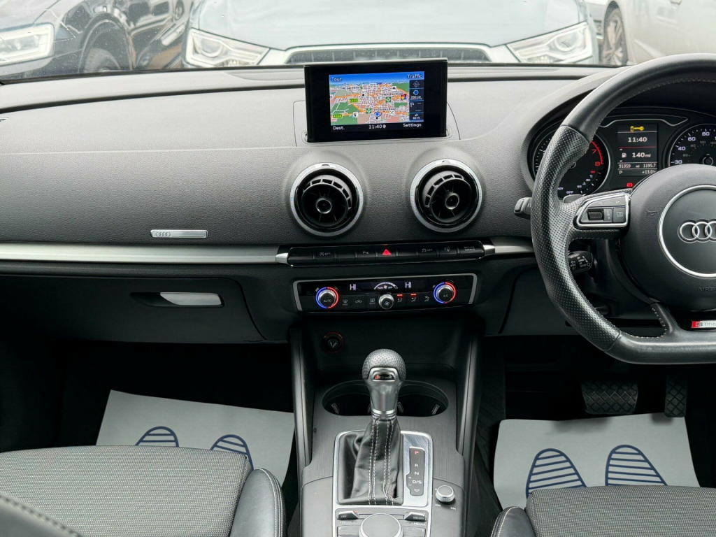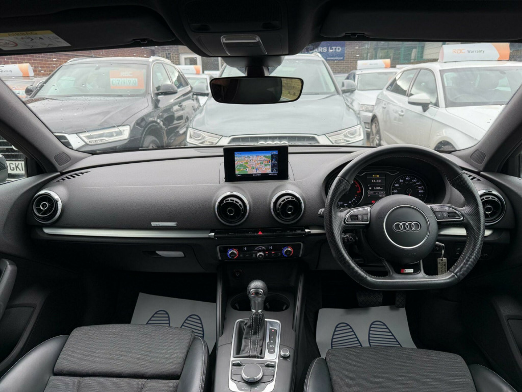 ONE OWNER FROM NEW, THREE MONTHS WARRANTY, MOT 13-09-2026, SAT NAV, PARKING SENSORS, BLUETOOTH, 2 KEYS,. 12V Power Socket - Centre Console, 12V Power Socket - Rear, 18in Alloy Wheels - 5-Parallel Spoke Design Partly Polished, 2 x SDXC Card Readers, ABS - Anti-Lock Braking System, AMI - Audi Music Interface, ASR - Anti Slip Regulation, Adaptive Brake Lights, Airbags - Driver, Airbags - Drivers Knee, Airbags - Front Passenger, Airbags - Front Side, Airbags - Head Level Side For Front and Rear, Alarm - Thatcham Category 1, Aluminium Interior Elements, Anti Theft Locking Wheel Bolts, Audi Drive Select, Audio Output - 80 Watts, Car Jack, Child Locks - Manual, Cloth Headlining in Black, Coat Hooks - B Pillar - Both Sides, Colour Drivers Information System - DIS, Cup Holders - x2 in Centre Console, DAB Digital Radio, Display Screen Colour - 5.8in, Door Mirrors - Body Coloured with Integrated LED Indicators, Door Mirrors - Electrically Adjustable and Heated, Door Sill Trims with S Line Logo, Dual-Zone Electronic Climate Control, EBD - Electronic Brakeforce Distribution, EDL - Electronic Differential Lock, ESP - Electronic Stability Programme, Electric Windows - Front and Rear, Electromechanical Parking Brake, Electromechanical Power Steering, Exhaust Tailpipe - Twin, First Aid Kit, Fog Lights - High Gloss Black Surrounds, Front Centre Armrest, Front Fog Lights, Front Passenger Airbag Deactivation Switch, Front Sports Seats, Front and Rear Floor Mats, Full European Map Data, Gear Knob - Perforated Leather, Glovebox - Illuminated, Headlights - Automatic Dynamic Range Control, Headlights - Bi-Xenon Plus, Headlights Washers, Heated Rear Windscreen, Heated Windscreen Washer Jets, Height Adjustable Boot Floor, Hydraulic Brake Assist, ISOFIX Child Seat Mounting for Front Passenger and Rear Outer Seats, Illuminated Vanity Mirrors, Immobiliser, Inlays - Matt Brushed Aluminium, Interior Elements - Air Vents - Aluminium, Interior Elements - Frame Around the Inside Door Handle - Aluminium, Interior Elements - Glove Compartment - Aluminium, Interior Elements - Window Control Switches - Aluminium, Interior Lighting, LED Daytime Running Lights, LED Rear Indicators, LED Rear Lights, Luggage Compartment - Illuminated, Luggage Compartment - Lashing Points x4, Luggage Compartment - Side Net, MMI Radio, Mobile Telephone Preparation - Bluetooth Interface, Model and Engine Technology Badges at Rear, Pollen Filter, Radiator Grille - High Gloss Black, Rear Parcel Shelf Removable, Remote Central Locking with 2 Fold Away Keys, Rest Recommendation System, S Line Badges on Front Wings, S Line Body Styling, S line Design Front Bumper-Rear Diffuser-Side Sills and Roof Spoiler, Satellite Navigation System - SD Card Based, Seat Belt Reminder for All Seats, Seats - Adjustment for Cushion Depth, Seats - Extendable Thigh Support, Seats - Front Height Adjustment, Seats - Split Folding Rear - 60-40, Secondary Collision Brake Assist, Smoking Package, Space Saver Spare Wheel, Speakers x8, Sport Suspension, Steering Wheel - 3-Spoke Leather-Flat Bottomed-Shift Paddles, Steering Wheel - Gear Shift Paddles, Steering Wheel - Height and Reach Adjustable, Steering Wheel - Multi-function, Storage Compartment - Centre Console, Storage Compartment Under Rear Seat, Storage Compartments - Door Side Trims, Storage Net in Front Passenger Footwell and Front Seat Backrests, Storage and Luggage Package, Sun Visors - with Covered Vanity Mirrors, Tool Kit, Tyre Pressure Monitoring System, USB Connection, Voice Control, Voice Control - Navigation, Warning Triangle, Washer Fluid Level Indicator, Window Surrounds - Aluminium.