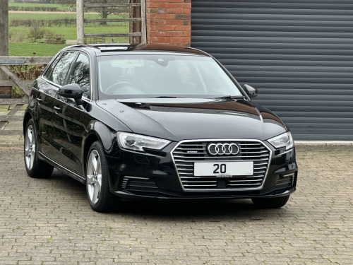 2020 Audi A3 TFSIe e-tron, plug in hybrid electric and petrol power. In Black Met with Black Leather trim, This Euro 6 compliant 1.4 litre petrol engine, Sat Nav, Rear Parking sensors parking assistance system, Keyless Entry, light and rain sensor automatically activates the headlights, Dual zone electronic climate control, Full Audi Service History.
