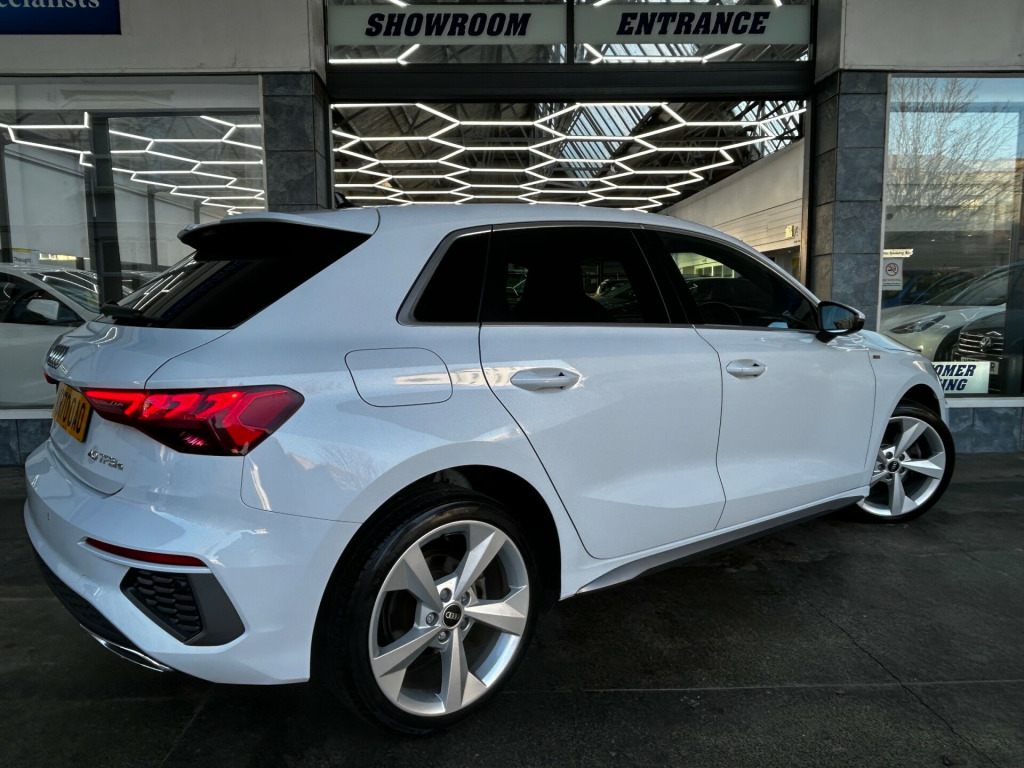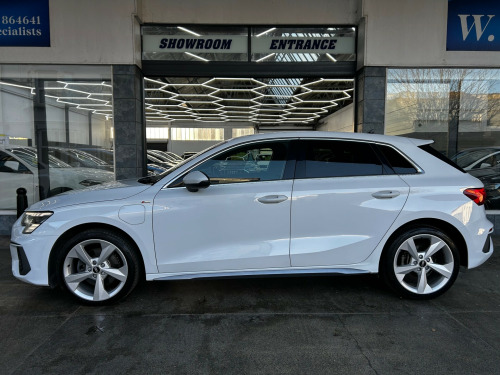 W Jones of Bognor are delighted to present this lovely Audi A3 1.4 TFSIe 40 S Line 13kWh Petrol Plug-in Hybrid S Tronic 5dr. Across all our stock, we ensure servicing is up to date, provide a new 12 month MOT, and provide warranty options of up to 36 months! As we are an AA Approved dealership, all vehicles come with 12 months AA breakdown cover free of charge. We are partnered with one of the largest finance brokers in the country, Evolution Funding, in order to cater to all deal sizes and credit ratings, on both HP and PCP. Unsure if you'll be accepted? We can soft search your credit profile to check how likely you are to be accepted! W Jones is a family run business, founded in 1902 and currently run by a 5th generation Jones. We have an indoor showroom facility and also a workshop, for MOTs, servicing and repairs. If you have any questions please do not hesitate to get in touch. v socket and storage compartment in front centre console, 2 usb-c ports with charge and data functions, 6 passive loudspeakers, audi connect emergency call and service, audi connect navigation and infotainment services plus (3 year subscription from new), audi smartphone interface, bluetooth interface, dab digital radio, mmi navigation plus with high resolution 10.1in touchscreen colour display, 18in alloy wheels - 5-arm dynamic design, aluminium window trims, anti theft locking wheel bolts, body coloured door mirrors, electric windows - front, exterior mirrors - electrically adjustable - heated and folding - automatically dimming on both sides with built-in led side indicators - including automatic kerb-side function for the passenger-side, manual boot compartment lid, privacy glass, privacy glass - dark-tinted rear window - rear door and side window., rear side air outlets - grained matt black, s line bumpers, s line styling, s roof spoiler, tyre repair kit, windscreen with acoustic glazing, airbags - driver and front passenger with passenger airbag deactivation, anti-theft alarm, audi pre-sense front with pedestrian and cyclist recognition, esc - electronic stabilisation control inc abs - asr and edl, electronically operated child locks, first aid kit and warning triangle and 2 safety vests, front side airbags with head airbags and interaction airbag, hill hold assist, i-size and top tether child seat mounting for the outer rear seats, remote central locking, seat belt monitoring, aluminium interior elements, audi virtual cockpit, auto dimming and frameless rear view mirror, cloth headlining in black, dual-zone electronic climate control, front sports seats, front and rear centre armrest in leather, front and rear floor mats, illuminated door sill trims with aluminium inserts and s logo, inlays - dark spectrum aluminium, led interior light package, luggage compartment floor covering, pedals and footrest - stainless steel, split-folding rear seat bench can be split 40: 20: 40 or fully, with centre armrest and cup holders, steering wheel - 3-spoke leather-multi-function, tool kit, type 2 socket for ac charging, audi drive select, automatic start-stop system with recuperation, collision avoidance assistant, cruise control, domestic charging cable - 3 pin 10 amp, electromechanical power steering, lane departure warning, rear parking sensors, standard suspension, type 2 mode 3 32amp charging cable, tyre pressure loss indicator, voice control system with natural language interaction, led headlights with led rear lights and dynamic rear indicators, light and rain sensor
