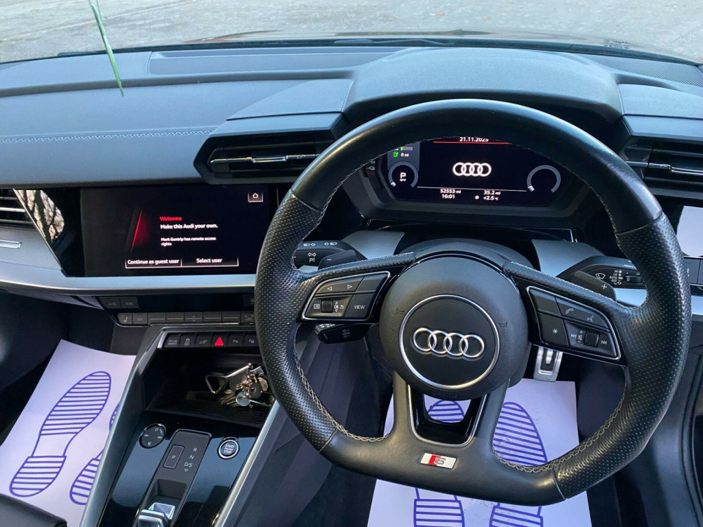 This 2021 Audi A3 TFSIe S line is a superb example, having been owned by just one careful keeper since new. This particular model boasts a 1.4 litre petrol plug in hybrid engine, meeting the Euro 6 emission standards. It comes equipped with a suite of desirable features, including rear parking sensors with parking assistance, and dual zone electronic climate control for optimal comfort. The advanced LED headlights and LED rear lights, complete with dynamic rear indicators, ensure excellent visibility and a distinctive look.Further enhancing your driving experience, this Audi A3 features the Audi Smartphone Interface, which includes Apple CarPlay, and a Bluetooth interface for seamless connectivity. These features, combined with the efficient plug in hybrid technology and the sporty S line trim, set this A3 apart from other similar vehicles, offering a blend of advanced technology, comfort, and dynamic performance.. 12v Socket and Storage Compartment in Front Centre Console, 18in Alloy Wheels - 5-Arm Dynamic Design, 2 USB-C Ports with Charge and Data Functions, 6 Passive Loudspeakers, Airbags - Driver and Front Passenger with Passenger Airbag Deactivation, Aluminium Interior Elements, Aluminium Window Trims, Anti Theft Locking Wheel Bolts, Anti-Theft Alarm, Audi Connect Emergency Call and Service, Audi Connect Navigation and Infotainment Services Plus (3 Year Subscription From New), Audi Drive Select, Audi Pre-Sense Front with Pedestrian and Cyclist Recognition, Audi Smartphone Interface, Audi Virtual Cockpit, Auto Dimming and Frameless Rear View Mirror, Automatic Start-Stop System with Recuperation, Bluetooth Interface, Body Coloured Door Mirrors, Cloth Headlining in Black, Collision Avoidance Assistant, Cruise Control, DAB Digital Radio, Domestic Charging Cable - 3 Pin 10 Amp, Dual-Zone Electronic Climate Control, ESC - Electronic Stabilisation Control inc ABS - ASR and EDL, Electric Windows - Front, Electromechanical Power Steering, Electronically Operated Child Locks, Exterior Mirrors - Electrically Adjustable - Heated and Folding - Automatically Dimming on Both Sides with Built-In LED Side Indicators - Including Automatic Kerb-Side Function for the Passenger-Side, First Aid Kit and Warning Triangle and 2 Safety Vests, Front Side Airbags with Head Airbags and Interaction Airbag, Front Sports Seats, Front and Rear Centre Armrest in Leather, Front and Rear Floor Mats, Hill Hold Assist, I-Size and Top Tether Child Seat Mounting for the Outer Rear Seats, Illuminated Door Sill Trims with Aluminium Inserts and S Logo, Inlays - Dark Spectrum Aluminium, LED Headlights with LED Rear Lights and Dynamic Rear Indicators, LED Interior Light Package, Lane Departure Warning, Light and Rain Sensor, Luggage Compartment Floor Covering, MMI Navigation Plus with High Resolution 10.1in Touchscreen Colour Display, Manual Boot Compartment Lid, Pedals and Footrest - Stainless Steel, Privacy Glass, Privacy Glass - Dark-Tinted Rear Window - Rear Door and Side Window., Rear Parking Sensors, Rear Side Air Outlets - Grained Matt Black, Remote Central Locking, S Line Bumpers, S Line Styling, S Roof Spoiler, Seat Belt Monitoring, Split-Folding Rear Seat Bench can be Split 40: 20: 40 or Fully, with Centre Armrest and Cup Holders, Standard Suspension, Steering Wheel - 3-Spoke Leather-Multi-Function, Tool Kit, Type 2 Mode 3 32amp Charging Cable, Type 2 Socket for AC Charging, Tyre Pressure Loss Indicator, Tyre Repair Kit, Voice Control System with Natural Language Interaction, Windscreen with Acoustic Glazing.