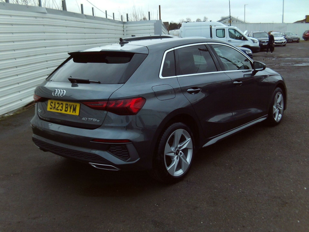 This 2023 Audi A3 1.4 TFSIe 40 S line Sportback S Tronic Euro 6 (s/s) 5dr 13kWh Hatchback is currently available for £17,495 in Glasgow with P/ElecPlug engine and Automatic gearbox. For more information or to arrange a viewing, click here to send us an email using form below.