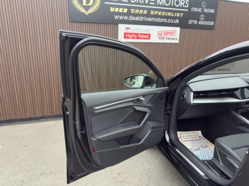 2021 Audi A3 1.4 TFSIe 40 Sport S Tronic Plug-in Hybrid – 204 PS Available now at DealDrive Motors.  This Audi A3 TFSIe Sport offers a perfect blend of efficiency, technology, and premium design. Enhanced with a gloss black front grille and black boot emblem, it exudes a distinctive, sporty character while maintaining the sophistication expected from the A3 range.  Powered by a 1.4-litre petrol engine paired with a plug-in hybrid system producing 204 PS, it delivers smooth performance with instant torque and whisper-quiet efficiency. The S Tronic automatic gearbox ensures seamless gear changes, while Euro 6 / ULEZ compliance guarantees everyday usability in all city zones.  Presented with just 36,900 miles, one previous owner, and a full service history, this A3 has been cared for to the highest standard. Features include LED headlights and taillights, dual-zone electronic climate control, Audi Smartphone Interface with Apple CarPlay and Android Auto, and Bluetooth connectivity. Automatic lights and rain sensors enhance daily convenience.  Inside, the cabin feels refined with quality materials, intuitive controls, and a clean, driver-focused layout. Efficient, connected, and stylish, this A3 TFSIe represents the modern evolution of Audi's popular Sportback — combining plug-in hybrid performance with premium comfort.  Well maintained and HPI clear for total peace of mind.  Ownership Highlights:  Power: 204 PS  0–60 mph: 7.6 sec (approx.)  Combined Econom 12v Socket and Storage Compartment in Fr, 17in Alloy Wheels - 5-Parallel Spoke Des, 2 USB-C Ports with Charge and Data Funct, 3.6kW Onboard Charger, 6 Passive Loudspeakers, Airbags - Driver and Front Passenger wit, Aluminium Interior Elements, Aluminium Window Trims, Anti Theft Locking Wheel Bolts, Anti-Theft Alarm, Audi Connect Emergency Call and Service, Audi Connect Navigation and Infotainment, Audi Drive Select, Audi Pre-Sense Front with Pedestrian and, Audi Smartphone Interface, Audi Virtual Cockpit, Auto Dimming and Frameless Rear View Mir, Automatic Start-Stop System with Recuper, Bluetooth Interface, Body Coloured Door Mirrors, Body-Coloured Roof Spoiler, Child Locks - Manual, Cloth