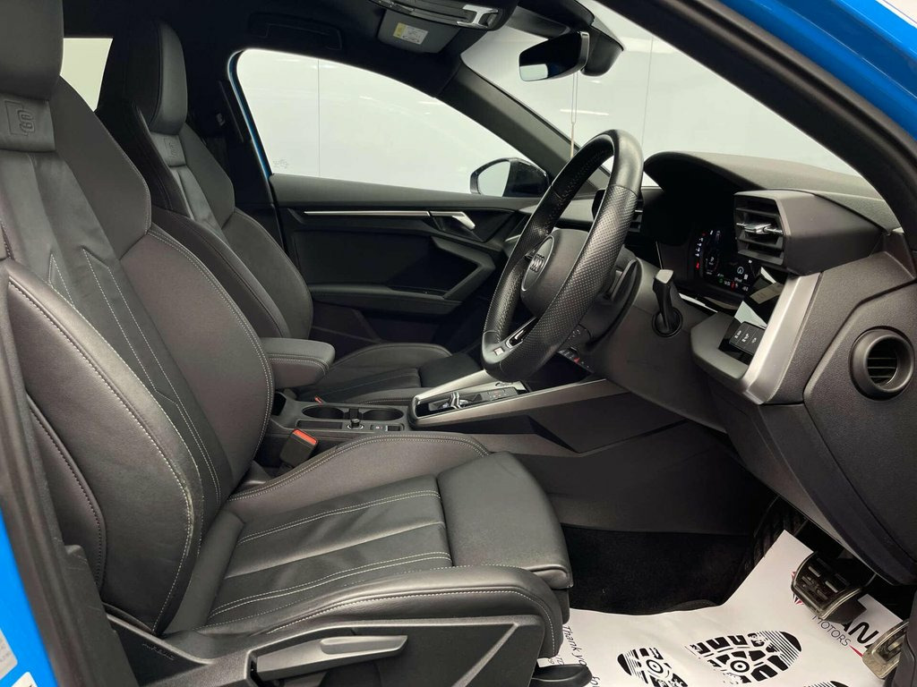 REF : AUDI A3 1.5 TFSI 35 S LINE SPORT BACK 5DR PETROL S TRONIC EURO 6 150 BHP FINISHED IN EXCLUSIVE TURBO BLUE WITH FULL LEATHER INTERIOR. THIS HIGH SPECIFICATION EXAMPLE BOASTS THE 1 OWNER FROM NEW AND A FULL AUDI SERVICE RECORD COMES WITH FACTORY EXTRAS WHICH INCLUDE | COMFORT&SOUND | AMBIENT LIGHTING | APPLE CAR PLAY | B&O SOUND SYSTEM | TECHNOLOGY PACKAGE | VIRTUAL DASH | BLACK STYLING PACK 18INCH ALLOYS | MULTIFUNCTIONAL STEERING WHEEL | FRONT HEATED SEATS | PRIVACY GLASS | REVERSE CAMERA | FRONT AND REAR PARKING SENSORS | 2 KEY | KEYLESS START | HEATED AND FOLDING MIRRORS | PLUS MUCH MORE BE FAST - A RARE FIND IN THIS SPECIFICATION AND NOT TO BE MISSED.... Further to this all vehicles are provided with a comprehensive AA Dealer Care Extended Guarantee and Full AA Roadside, Recovery and Home Start & Onward travel (where not covered under the manufactures own warranty). HPI checks are carried out making sure all cars are clear from any concern, offering you total piece of mind. Every vehicle's mileage is fully guaranteed as genuine. Included with your purchase you will receive a minimum of 3 months Warranty with the option to extended and tailor your package at the time of purchase. Our vehicles are supplied fully valeted to the highest standards and include up to date servicing with a minimum of 9 months MOT. We are regulated by the FCA and can provide a range of flexible finance options, tailoring a package to your needs. We aim to a make the numbers w 1 x USB-C and 1 x USB-C Port Connection , 12v Socket and Storage Compartment in Fr, 18in Alloy Wheels - 5-Arm Dynamic Design, 6 Passive Loudspeakers, Acoustic Windscreen, Airbags - Front Side and Head System, Aluminium Interior Elements, Aluminium Window Trims, Anti Theft Locking Wheel Bolts, Anti-Theft Alarm, Audi Connect Emergency Call and Service, Audi Connect Navigation and Infotainment, Audi Drive Select, Audi Pre-Sense Front with Pedestrian and, Audi Smartphone Interface, Audi Virtual Cockpit - 10.25in Display, Auto Dimming and Frameless Rear View Mir, Bluetooth Interface, Body Coloured Door Mirrors, Child Locks - Electric, Child Seat Anchors ISOFIX in Front, Top , Cloth Headlining in