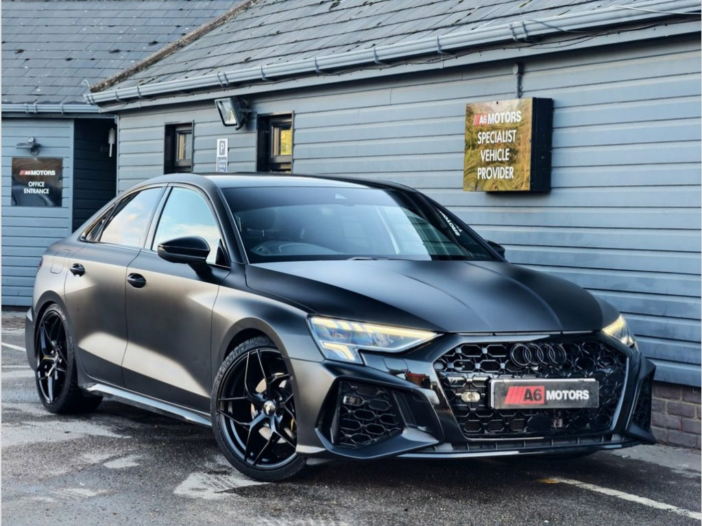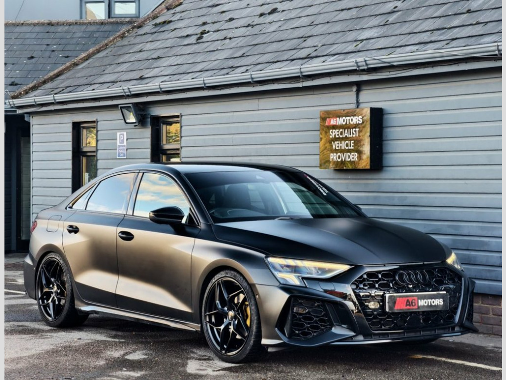 SAME DAY FINANCE AVAILABLE WITH £0 DEPOSIT. CALL OUR FINANCE TEAM FOR A QUOTATION TODAY. REQUEST A PERSONALISED VIDEO TODAY. STUNNING AUDI A3 BLACK EDITION WRAPPED IN STAIN BLACK WITH RS3 STYLING UPGRADES. THIS LOVELY EXAMPLE IS SUPPLIED HPI CLEAR & WITH A NATIONWIDE WARRANTY. GOOD CONDITION THROUGH OUT. DRIVES WELL. HAS A FULL AUDI SERVICE HISTORY. DRIVES WELL. LOOKS THE PART. HAS BANG OLUFSEN SOUND SYSTEM, ADAPTIVE CRUISE CONTROL, LANE ASSIST, REVERSING CAMERA, ELECTRIC HEATED & POWER FOLDING WING MIRRORS, SAT NAV, DAB, BLUETOOTH & MORE. Glacier White, Driver Assistance Pack, Storage Package, Technology Pack, Body Coloured Door Mirrors, 12v Socket and Storage Compartment in Fr, 19in Alloy Wheels - 5-Arm Trapezoid Desi, 2 USB-C Ports with Charge and Data Funct, 4-Way Lumbar Support for Front Seats, 6 Passive Loudspeakers, Airbags - Driver and Front Passenger wit, Aluminium Interior Elements, Anti Theft Locking Wheel Bolts, Anti-Theft Alarm, Audi Beam, Audi Connect Navigation and Infotainment, Audi Drive Select, Audi Pre-Sense Front with Pedestrian and, Audi Smartphone Interface, Audi Virtual Cockpit, Auto Dimming and Frameless Rear View Mir, Black Styling Pack, Bluetooth Interface, Camera Based Traffic Sign Recognition, Cloth