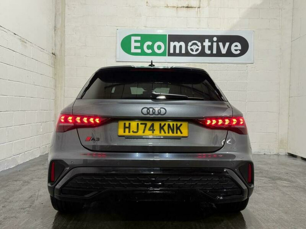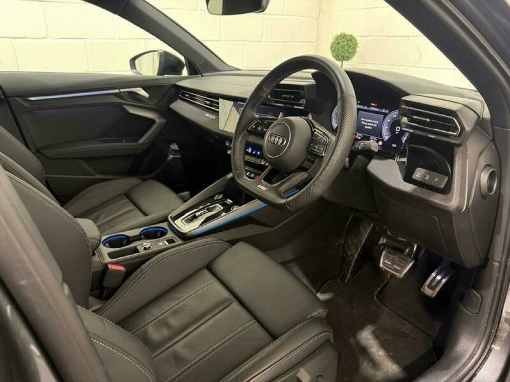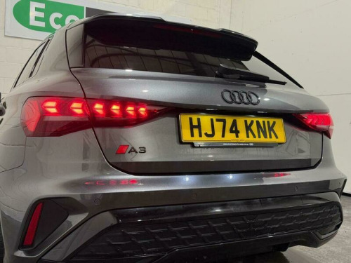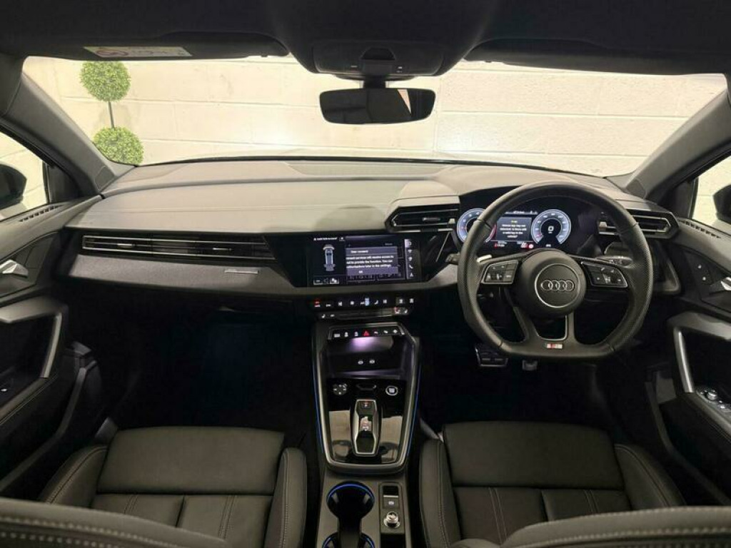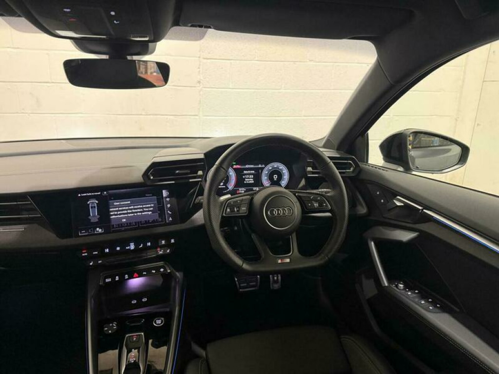 This 2024 Audi A3 TFSI Black Edition presents an exceptional opportunity with its remarkably low mileage of just 5113 miles, a clear vehicle history check, and a Euro 6 compliant 1.5 litre petrol engine. As a Black Edition model, it boasts a sophisticated aesthetic complemented by LED headlights with dynamic rear indicators and LED rear lights. Inside, you'll find the convenience of heated front seats, the Audi Smartphone Interface for seamless Android Auto and Apple CarPlay integration, and the Audi Phone Box Light with wireless charging for effortless connectivity.The performance of this A3 is equally impressive, achieving 0-62mph in a brisk 8.1 seconds, demonstrating its agile acceleration. This particular model also benefits from the Park Assist Pack with Park Assist Plus, which includes front and rear parking sensors, making manoeuvring in tight spaces significantly easier. Furthermore, the generous boot space offers ample practicality for everyday needs and longer journeys, setting it apart from many other vehicles in its class. v socket and storage compartment in front centre console, 19in alloy wheels - 5-arm y design - matt grey - gloss turned, 3-zone deluxe automatic air conditioning, 4-way lumbar support for front seats, airbags - driver and front passenger with passenger airbag deactivation, aluminium interior elements, aluminium window trims, anti theft locking wheel bolts, anti-theft alarm, audi beam, audi connect navigation and infotainment services plus (3 year subscription from new), audi drive select, audi phone box light with wireless charging, audi pre-sense front with pedestrian and cyclist recognition, audi smartphone interface, audi sound system, audi virtual cockpit plus, auto dimming and frameless rear view mirror, automatic start-stop system with recuperation, black styling pack, camera based traffic sign recognition, cloth headlining in black, collision avoidance assistant, cruise control, dab digital radio, distraction and fatigue warning, esc - electronic stabilisation control inc abs - asr and edl, electromechanical power steering, electronically operated child locks, emergency call - e-call, exterior mirrors - electrically adjustable - heated and folding - automatically dimming on both sides with built-in led side indicators - including automatic kerb-side function for the passenger-side, first aid kit and warning triangle and 2 safety vests, flat-bottomed 3-spoke leather multi-function sports steering wheel with gear-shift paddles, front side airbags with head airbags and interaction airbag, front sports seats, front and rear centre armrest in artificial leather, front and rear floor mats, heated front seats, hill hold assist, i-size and top tether child seat mounting for the outer rear seats, illuminated door sill trims with aluminium inserts and s logo, inlays - black impressum woven textile, led headlights with led rear lights and dynamic rear indicators, lane departure warning, light and rain sensor, mmi navigation plus with high resolution 10.1in touchscreen colour display, manual boot compartment lid, model badging - exterior, multi-coloured extended led interior light pack, park assist pack with park assist plus, pedals in stainless steel and footrest in black, privacy glass, remote central locking with safelock, s line bumpers, s roof spoiler, seat belt monitoring, speed limiter - adjustable, split-folding rear seat backrest - 40-20-40 split or fully collapsable, sport suspension, steering wheel - s badging, tool kit, tyre pressure loss indicator, tyre repair kit, usb ports with charging function in rear, windscreen with heat insulating and acoustic glazing