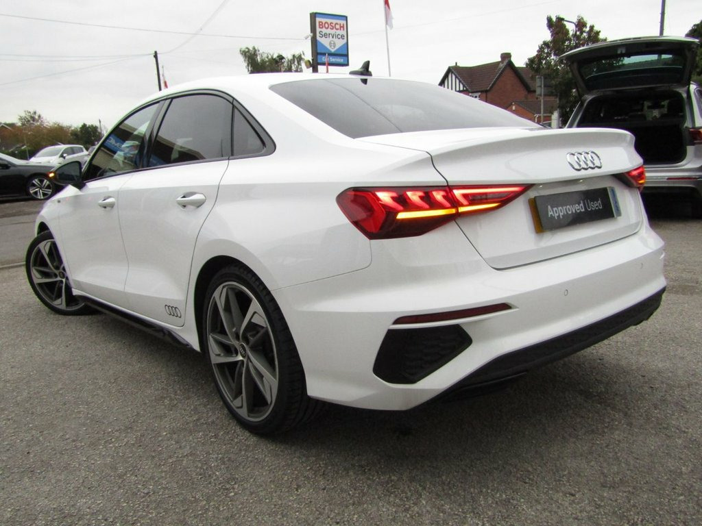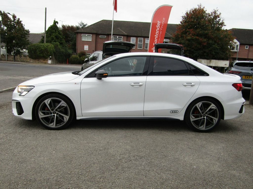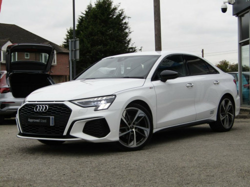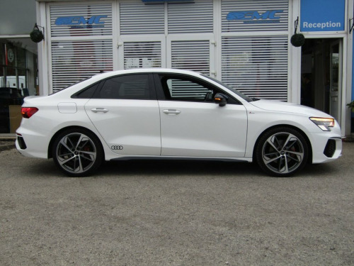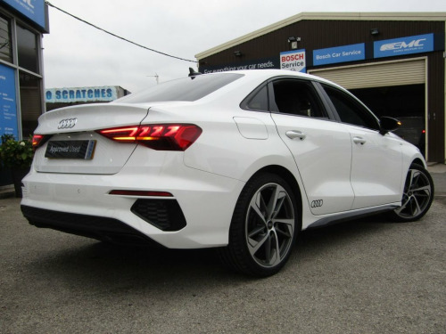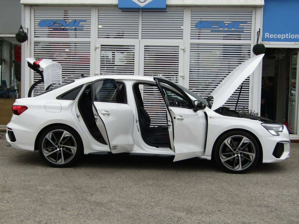 STUNNING, BLACK PACK, AUDI A3 1.5 TFSI 35 EDITION 1, S/LINE, SALOON. Finished in IBIS WHITE with contrasting LEATHER/ALCANTARA Heated Memory SPORTS trim. This Audi A3 Saloon is a classy, high tech four-door that is also great to drive. This A3 saloon is a sleeker-looking version of the Audi A3 Sportback hatchback. Features include Sat Nav, Virtual Dash, DAB Radio, Heated Memory Sports Trim, Tinted windows, B/tooth, 19" Alloys, Black Pack, Apple Car Play, Power Folding Door Mirrors and more. AUDI Dealer serviced at 17356 miles, 33613 miles, 47960 miles and on arrival at 63624 miles. EMC IS A FAMILY RUN BUSINESS, EST IN 1989. OUR AIM IS TO PROVIDE A SIMPLE, EASY AND CARING BUYING EXPERIENCE. Please call JEFF or BEN to reserve this wonderful example today.   Alcantara Twin Leather - S Embossing for, 19in Alloy Wheels - 5-Arm Trapezoid Desi, Audi Drive Select, Audi Matrix LED Headlights with LED Rear, Audi Virtual Cockpit Plus, DAB Digital Radio, Black Styling Pack, Heated Front Seats, Privacy Glass, S Line Bumpers