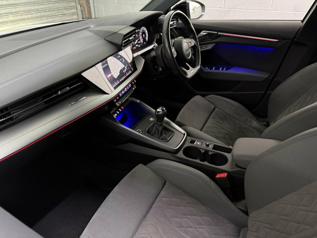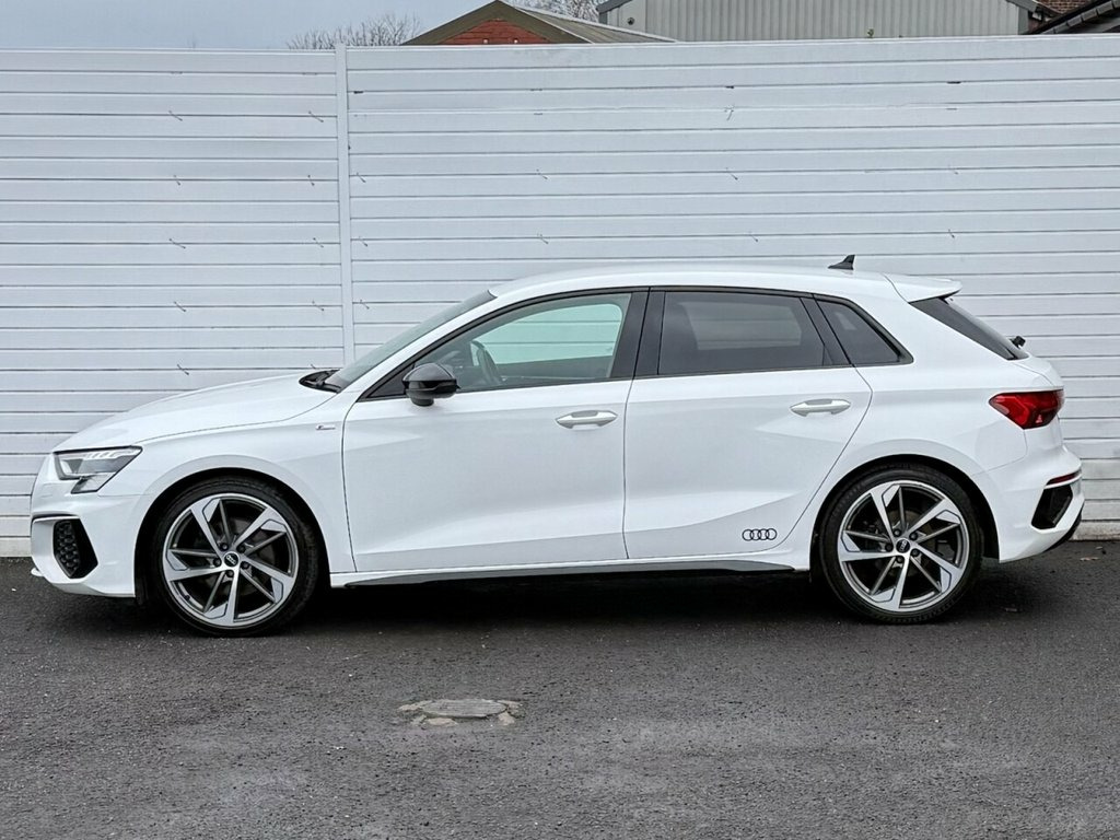 Here we have a stunning 2021 Audi A3 1.5 TFSI 35 Edition 1 Sportback, finished in a sharp and sporty specification. This vehicle comes with a full Audi service history, has been very well looked after, is lovely and clean inside and out, and drives superbly. Powered by the refined and efficient 1.5 TFSI petrol engine, this A3 delivers an excellent balance of performance and economy. The Edition 1 trim offers a premium look and feel, enhanced by 19-inch alloy wheels, Black Styling Pack, Audi decals, and sun protection glass, giving the car a real road presence. The interior is equally impressive, featuring half leather, half diamond-stitched Alcantara S line sport seats, electric memory seats, and a leather S line flat-bottom multifunction steering wheel. Technology is at the forefront with Audi Virtual Cockpit, touchscreen multimedia system, satellite navigation, Bluetooth audio and telephone, DAB digital radio, and wireless Apple CarPlay and Android Auto. Comfort and convenience are enhanced with dual-zone climate control, heated seats, heated electrically folding door mirrors, front and rear electric windows, automatic headlights and wipers, remote central locking, and Audi Drive Select. Practical features include rear parking sensors, LED headlights with flood lighting, front centre armrest, twin cupholders, twin USB ports, and ISOFIX child seat mounting points. A fantastic example of Audi's latest-generation A3, offering style, technology and driving enjoyment in Glacier White, 12v Socket and Storage Compartment in Fr, 19in Alloy Wheels - 5-Arm Trapezoid Desi, 2 USB-C Ports with Charge and Data Funct, 4-Way Lumbar Support for Front Seats, 6 Passive Loudspeakers, Airbags - Driver and Front Passenger wit, Aluminium Interior Elements, Aluminium Window Trims, Anti Theft Locking Wheel Bolts, Anti-Theft Alarm, Audi Connect Emergency Call and Service, Audi Connect Navigation and Infotainment, Audi Drive Select, Audi Matrix LED Headlights with LED Rear, Audi Pre-Sense Front with Pedestrian and, Audi Smartphone Interface, Audi Virtual Cockpit Plus, Auto Dimming and Frameless Rear View Mir, Automatic Start-Stop System with Recuper, Black Styling Pack, Bluetoot