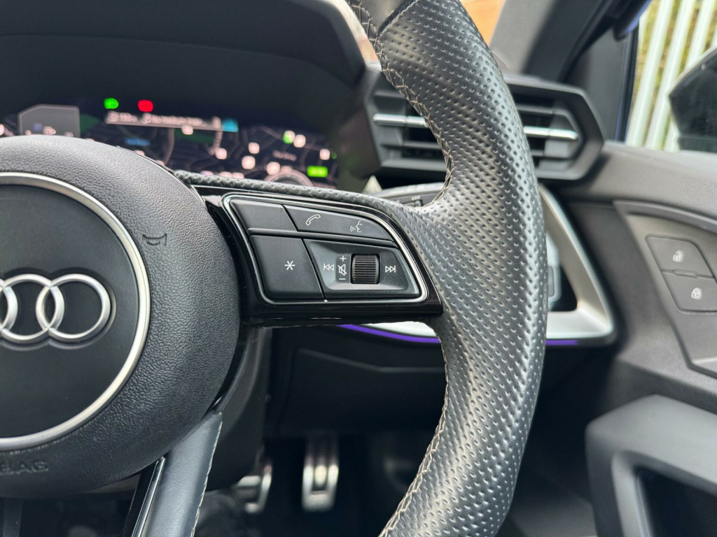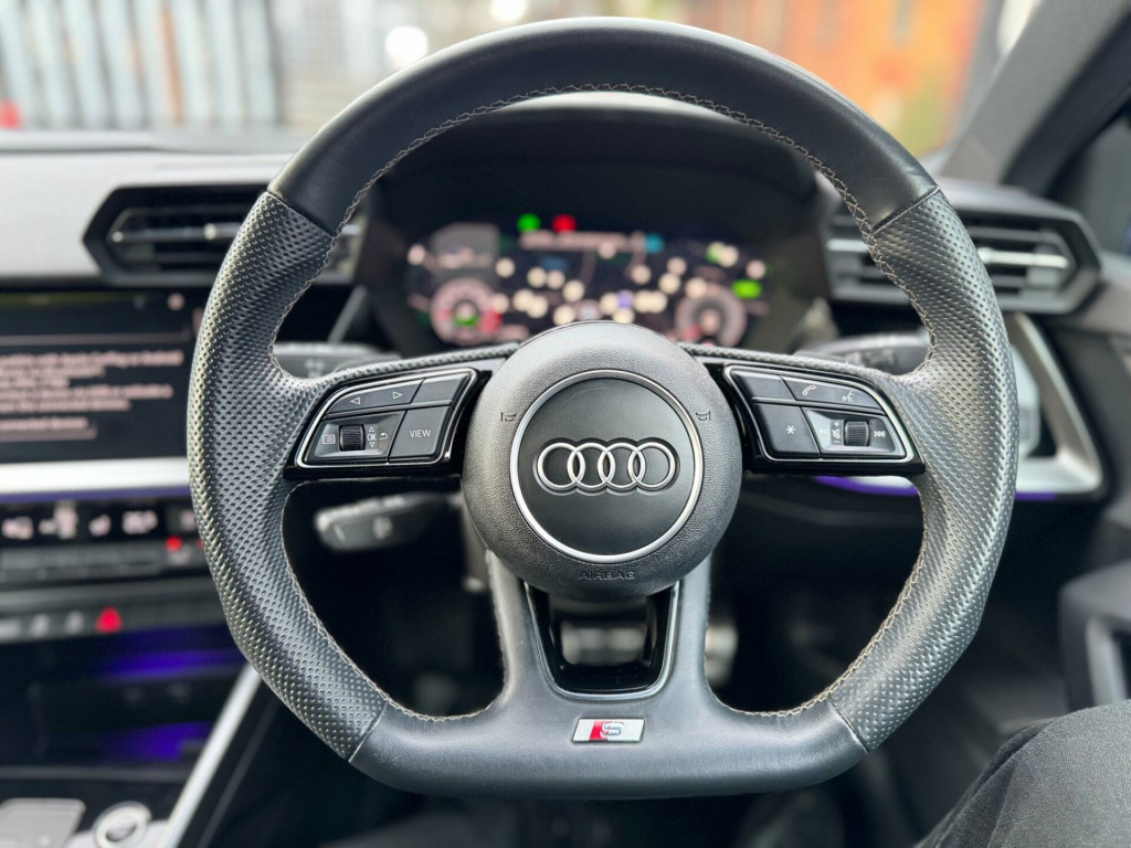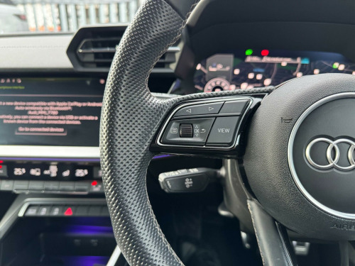 This 2021 Audi A3 TFSI Edition 1 is a remarkable find, boasting exceptionally low mileage of just 14,100 miles from its single owner. This Euro 6 compliant 1.5 litre petrol model comes in the desirable Edition 1 trim, offering a refined driving experience. Inside, you'll appreciate the comfort of heated front seats and the convenience of electrically adjustable front seats with a memory function for the driver. The Matrix LED exterior lighting pack ensures excellent visibility, while rear parking sensors make manoeuvring simple.The Audi A3 TFSI Edition 1 offers a compelling blend of performance and practicality. Its acceleration from 0 to 62mph in 8.4 seconds demonstrates its responsive nature, making it a pleasure to drive. The dual zone electronic climate control allows for personalised comfort for both driver and passenger. Furthermore, the generous boot space provides ample room for luggage or shopping, setting it apart from many other vehicles in its class. x usb-c and 1 x usb-c port connection - each with charge and data functions, 12v socket and storage compartment in front centre console, 19in alloy wheels - 5-arm trapezoid design in titanium matt grey - diamond cut finish, 6 passive loudspeakers, acoustic windscreen, airbags - front side and head system, aluminium interior elements, aluminium window trims, anti theft locking wheel bolts, anti-theft alarm, audi connect emergency call and service, audi connect navigation and infotainment services plus (3 year subscription from new), audi drive select, audi pre-sense front with pedestrian and cyclist recognition, audi smartphone interface, audi virtual cockpit plus, auto dimming and frameless rear view mirror, bluetooth interface, child locks - electric, cloth headlining in black, collision avoidance assistant, cruise control, dab digital radio, door mirrors - electrically adjustable - heated - folding - automatically dimming with memory function and integrated led indicators with kerb view function for passenger side, driver and front passenger airbag with front passenger airbag deactivation, dual-zone electronic climate control, esc - electronic stabilisation control inc abs - asr and edl, electric windows - front, electrically adjustable 4-way lumbar support, electrically adjustable front seats with memory function for drivers side, electromechanical power steering - speed-sensitive provides a precise steering feel at high speeds and excellent assistance when parking., extended ambient lighting pack - multi-coloured, first aid kit and warning triangle, front sport seats, front and rear centre armrest in leather, front and rear floor mats, heated front seats, hill hold assist, i-size and top tether child seat mounting for the outer rear seats, illuminated door sill trims with aluminium inserts and s logo, inlays - aluminium dark spectrum, interior lighting, led interior light package, lane departure warning, light and rain sensor, luggage compartment floor covering, mmi navigation plus with high resolution 10.1in touchscreen colour display, manual boot compartment lid, matrix led exterior lighting pack, pedals and footrest - stainless steel, privacy glass - dark-tinted rear window - rear door and side window., rear parking sensors, rear side air outlets - grained matt black, remote central locking, s line roof spoiler, seat belt monitoring, split-folding rear seat bench can be split 40: 20: 40 or fully, with centre armrest and cup holders, sport suspension, steering wheel - 3-spoke leather-multi-function-flat bottomed-sports-shift paddles, styling package - black, tool kit, tyre pressure loss indicator, tyre repair kit, voice control system