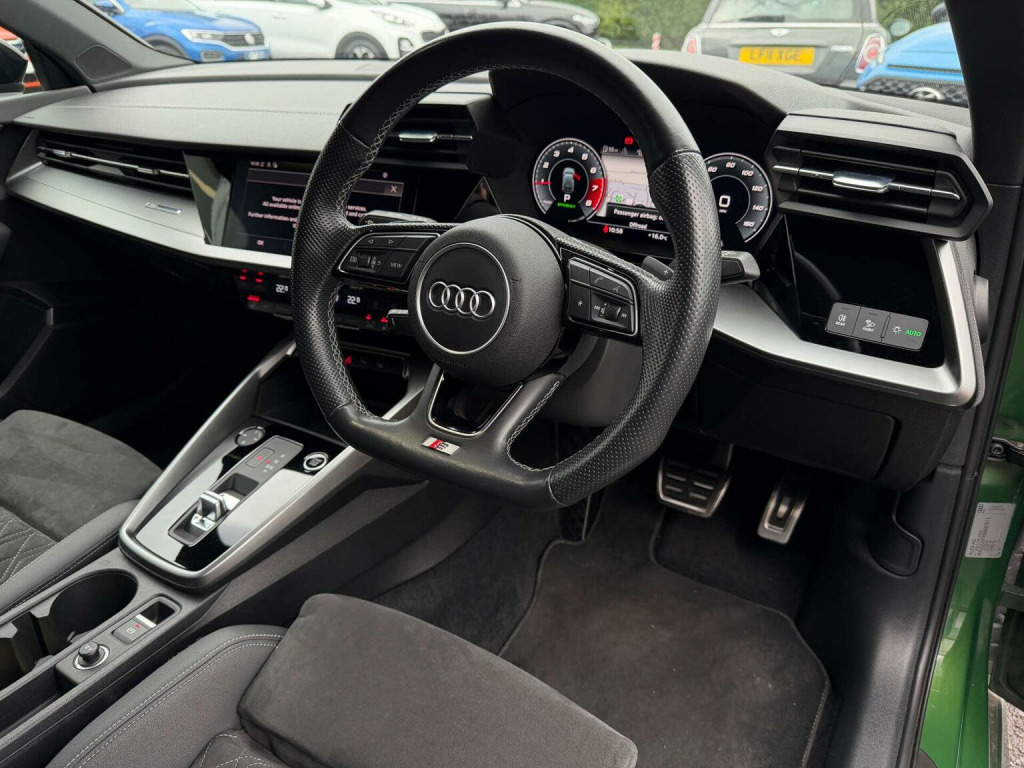 Stunning Audi A3 35 TFSi S-Line Edition 1; this car looks fantastic finished in very rare Audi Exclusive Sonoma Green; this car is presented in fantastic condition which has been helped by the car having had front end Paint Protection Film from new. The car benefits from having a Full Audi Main Dealer Service History with the most recent having been carried out in July 25. Being an S-Line Edition 1 it has a great specification which includes Satellite Navigation, DAB Radio, App Connect for Wireless Apple CarPlay/Android Auto, Bluetooth Telephone Connectivity, LED Headlights, Bang & Olufsen Surround Sound, Space Saver Spare Wheel, Heated Front Seats, Dual Zone Climate Controlled Air Conditioning, Reverse Camera, Front and Rear Parking Sensors, Electric Windows and Mirrors. 2 Keys. From our showroom in Corfe Mullen, we are able to provide flexible and competitive finance from a range of trusted and renowned providers, that makes purchasing from Corfe Mullen Cars stress-free and more affordable than you would imagine. Our factory trained technicians prepare our cars to a meticulous standard and give superb after-sales care in our well equipped workshop with the latest diagnostic equipment. This car comes with a 3 month Motoring Organisation Trading Standards approved Warranty with up to 36 months available & a minimum of 6 months MOT. We always put our customers at the forefront of our business, by providing a friendly, no-pressure environment for everyone who visits us.