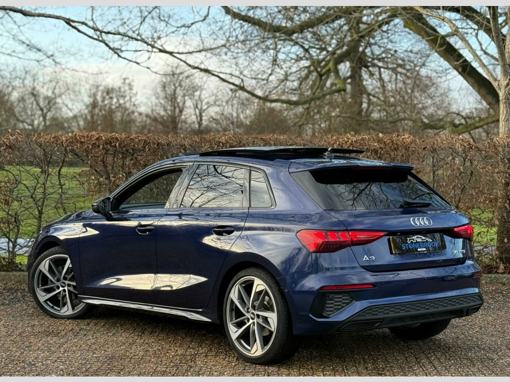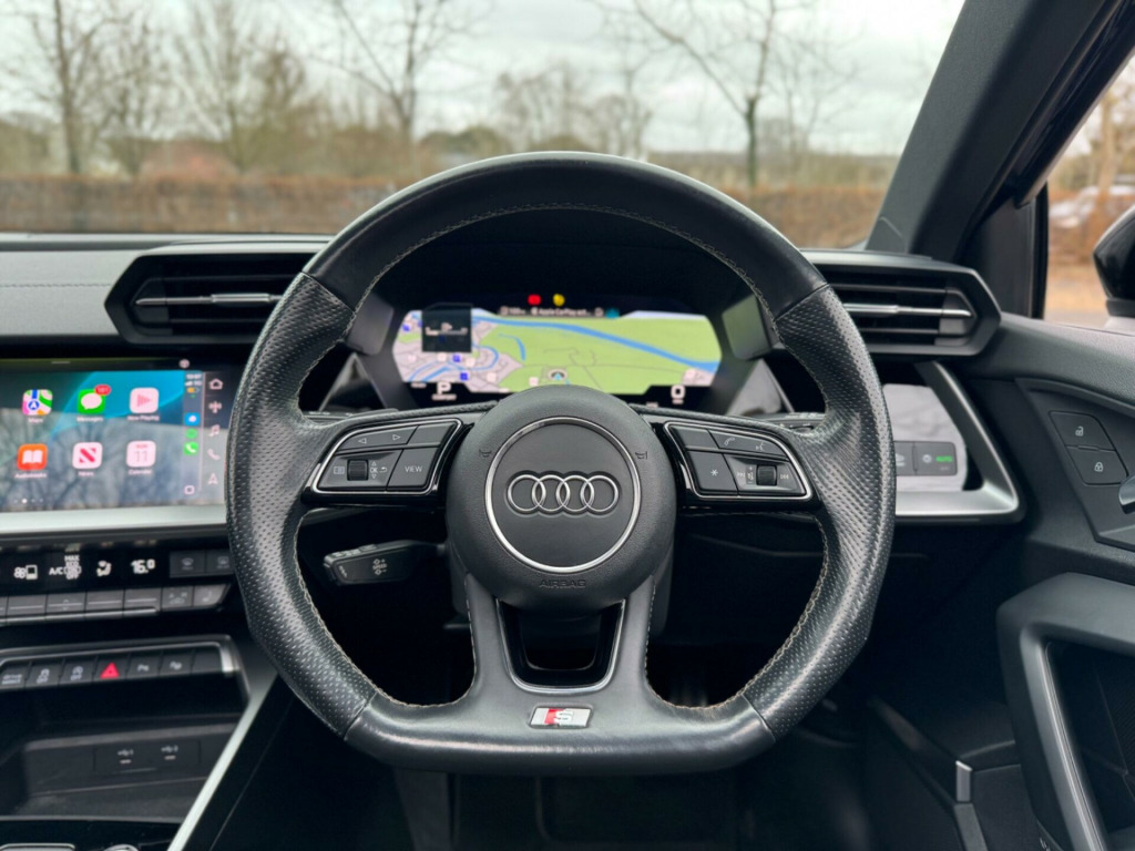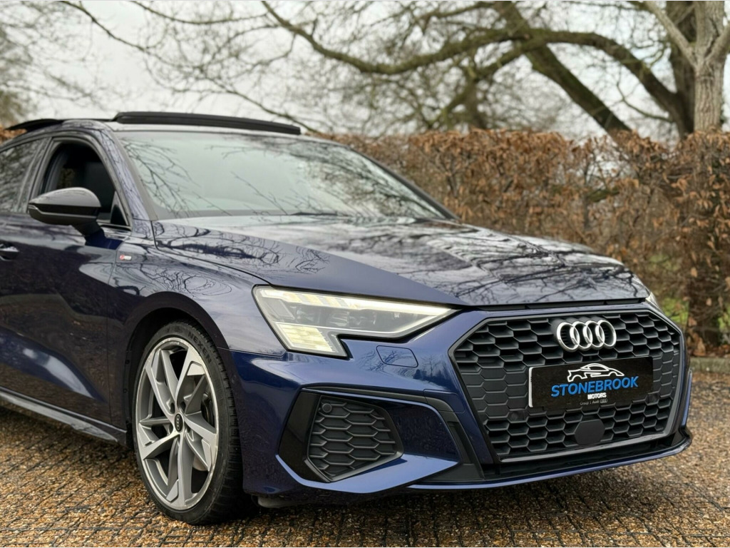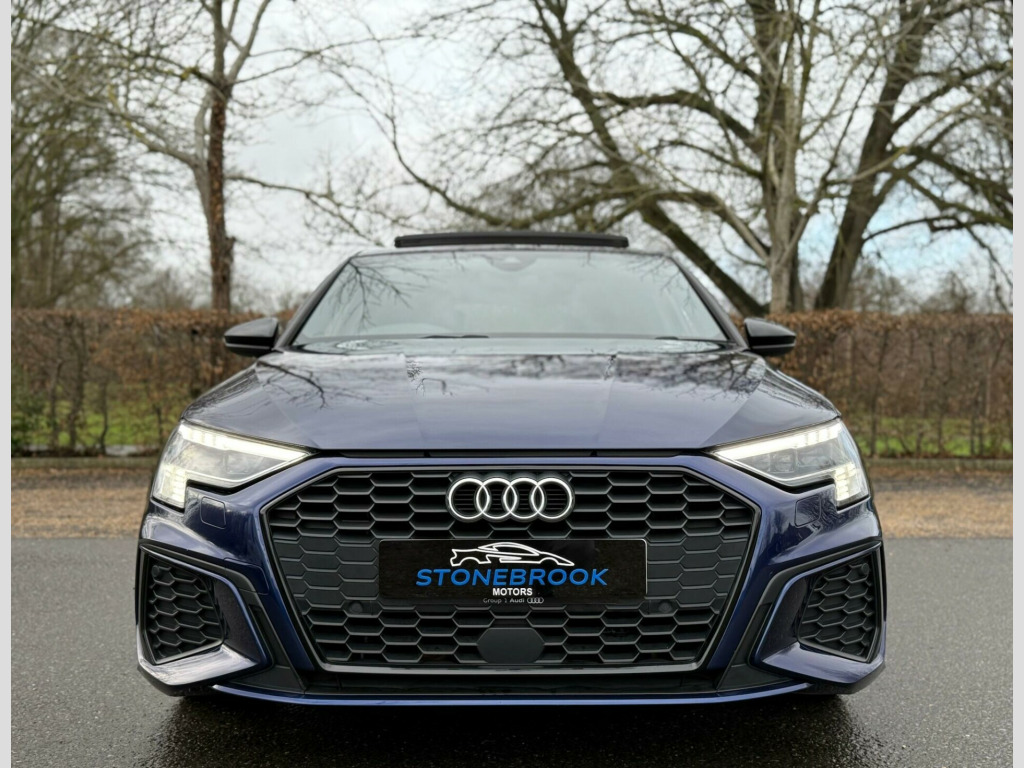 2021 Audi A3 1.5 TFSI 35 S Line S Tronic - 38,250 miles - £23,989This 2021 Audi A3 S Line 1.5 TFSI combines sporty styling, modern tech, and premium comfort. Finished in stunning Turbo Blue with a black interior, this A3 stands out thanks to its sharp S Line styling, giving it an even more aggressive and premium look.With 38,250 miles, a full service history, ULEZ compliance, and a fresh 12 months MOT, it's ready to drive away today.Spec highlights include:•Panoramic Glass Sunroof•Reverse Parking Camera• Bang & Olufsen Sound System•Comfort and Sound Package • Wireless CarPlay • Electric Seats•Flat-Bottomed Sports Contour Leather Steering Wheel with Paddle Shift• Dinamica Microfibre-Artifical Leather - Front Sports Seats with S Embossed Logo - Black•4-Way Lumbar Support for Front Seats•High Beam Assist•Audi Virtual Cockpit•S Line Styling PackagePowered by the punchy and efficient 1.5 TFSI petrol engine combined with a smooth S Tronic automatic gearbox, this A3 delivers a sporty yet economical drive, ideal for both city commuting and motorway journeys.Dealer benefits included:•Full Service History•ULEZ Compliant•12 Months MOT•6-Month Warranty (extendable up to 3 years)•AA Approved Dealer with 6 Months Roadside Cover•HPI Clear (report available)•Competitive Part Exchange•Nationwide Delivery Available•Vehicle Sourcing Service AvailableIf you're looking for a premium hatchback with big spec, sporty looks, and trusted history, this Audi A3 S Line is the perfect option. Call us today to arrange a viewing or test drive, we'll help with part exchange, or delivery with no pressure. ne change assistant with exit warning system and rear cross traffic alert, panoramic glass sunroof, alcantara twin leather - s embossing for front sport seats with rhombus pattern - black, comfort and sound package, storage package, 1 x usb-c and 1 x usb-c port connection - each with charge and data functions, 12v socket and storage compartment in front centre console, 19in alloy wheels - 5-arm trapezoid design in titanium matt grey - diamond cut finish, 6 passive loudspeakers, acoustic windscreen, airbags - front side and head system, aluminium interior elements, aluminium window trims, anti theft locking wheel bolts, anti-theft alarm, audi connect emergency call and service, audi connect navigation and infotainment services plus (3 year subscription from new), audi drive select, audi pre-sense front with pedestrian and cyclist recognition, audi smartphone interface, audi virtual cockpit plus, auto dimming and frameless rear view mirror, bluetooth interface, child locks - electric, cloth headlining in black, collision avoidance assistant, cruise control, dab digital radio, door mirrors - electrically adjustable - heated - folding - automatically dimming with memory function and integrated led indicators with kerb view function for passenger side, driver and front passenger airbag with front passenger airbag deactivation, dual-zone electronic climate control, esc - electronic stabilisation control inc abs - asr and edl, electric windows - front, electrically adjustable 4-way lumbar support, electrically adjustable front seats with memory function for drivers side, electromechanical power steering - speed-sensitive provides a precise steering feel at high speeds and excellent assistance when parking., extended ambient lighting pack - multi-coloured, first aid kit and warning triangle, front sport seats, front and rear centre armrest in leather, front and rear floor mats, heated front seats, hill hold assist, i-size and top tether child seat mounting for the outer rear seats, illuminated door sill trims with aluminium inserts and s logo, inlays - aluminium dark spectrum, interior lighting, led interior light package, lane departure warning, light and rain sensor, luggage compartment floor covering, mmi navigation plus with high resolution 10.1in touchscreen colour display, manual boot compartment lid, matrix led exterior lighting pack, pedals and footrest - stainless steel, privacy glass - dark-tinted rear window - rear door and side window., rear parking sensors, rear side air outlets - grained matt black, remote central locking, s line roof spoiler, seat belt monitoring, split-folding rear seat bench can be split 40: 20: 40 or fully, with centre armrest and cup holders, sport suspension, steering wheel - 3-spoke leather-multi-function-flat bottomed-sports-shift paddles, styling package - black, tool kit, tyre pressure loss indicator, tyre repair kit, voice control system