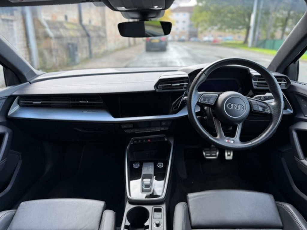 This 2021 Audi A3 TFSI S line is a superb example, having had only one owner since new. It boasts a 1.5 litre petrol engine and meets Euro 6 emissions standards. Inside, you'll find Dual Zone Electronic Climate Control for personalised comfort, and the convenience of a Bluetooth interface. Navigating and parking are made easier with the Light and Rain Sensor, automatic headlights, and rear parking sensors. The striking LED headlights, complemented by LED rear lights and dynamic rear indicators, ensure excellent visibility.This Audi A3 TFSI S line offers impressive efficiency, achieving a highlight of 49 miles per gallon, which indicates it is more economical than many similar vehicles. Furthermore, its low insurance group and low CO2 emissions highlight its cost effectiveness and environmental consideration, making it a sensible choice for many drivers.. 12v Socket and Storage Compartment in Front Centre Console, 2 USB-C Ports with Charge and Data Functions, 6 Passive Loudspeakers, Audi Connect Emergency Call and Service, Audi Connect Navigation and Infotainment Services Plus (3 Year Subscription From New), Audi Smartphone Interface, Bluetooth Interface, DAB Digital Radio, MMI Navigation Plus with High Resolution 10.1in Touchscreen Colour Display, Audi Drive Select, Collision Avoidance Assistant, Cruise Control, Lane Departure Warning, Rear Parking Sensors, Tyre Pressure Loss Indicator, Voice Control System with Natural Language Interaction, 18in Alloy Wheels - 5-Arm Dynamic Design, Aluminium Window Trims, Anti Theft Locking Wheel Bolts, Body Coloured Door Mirrors, Electric Windows - Front, Exterior Mirrors - Electrically Adjustable - Heated and Folding - Automatically Dimming on Both Sides with Built-In LED Side Indicators - Including Automatic Kerb-Side Function for the Passenger-Side, Manual Boot Compartment Lid, Privacy Glass, Privacy Glass - Dark-Tinted Rear Window - Rear Door and Side Window., S Line Bumpers, S Line Styling, S Roof Spoiler, Windscreen with Acoustic Glazing, LED Headlights with LED Rear Lights and Dynamic Rear Indicators, Light and Rain Sensor, Aluminium Interior Elements, Audi Virtual Cockpit, Auto Dimming and Frameless Rear View Mirror, Cloth Headlining in Black, Dual-Zone Electronic Climate Control, Front and Rear Centre Armrest in Leather, Front Sports Seats, Illuminated Door Sill Trims with Aluminium Inserts and S Logo, Illuminated Vanity Mirrors, Inlays - Dark Spectrum Aluminium, Pedals in Stainless Steel and Footrest in Black, Split-Folding Rear Seat Bench can be Split 40: 20: 40 or Fully, with Centre Armrest and Cup Holders, Steering Wheel - 3-Spoke Leather-Multi-Function, Automatic Start-Stop System with Recuperation, Electromechanical Power Steering, Sport Suspension, Airbags - Driver and Front Passenger with Passenger Airbag Deactivation, Anti-Theft Alarm, Audi Pre-Sense Front with Pedestrian and Cyclist Recognition, Child Locks - Manual, ESC - Electronic Stabilisation Control inc ABS - ASR and EDL, Front Side Airbags with Head Airbags and Interaction Airbag, Hill Hold Assist, I-Size and Top Tether Child Seat Mounting for the Outer Rear Seats, Seat Belt Monitoring, Full Leather. Full service history