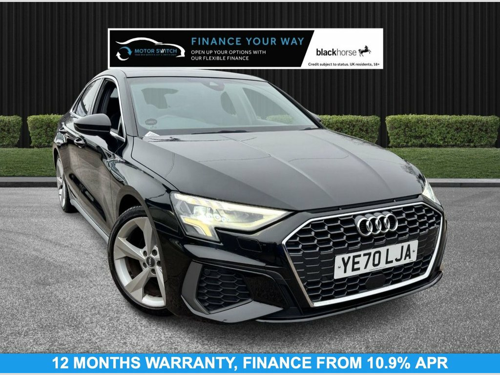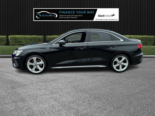 ADVERT: Audi A3 TFSI 35 S LINE Saloon 4dr (1.5 Petrol, S Tronic) - 202X/202X Your new motor is just a switch away with this Audi A3 TFSI 35 S LINE Saloon. Available now from Here At Motor Switch. Key features 1.5 TFSI Petrol, S Tronic automatic, Euro 6 Just 2 former keepers Freshly serviced and up-to-date Fully valeted using Auto Smart products HPI clear, mileage checked Nationwide warranty: 12 months 12 months MOT included Finance from 10.9% APR Delivery available; part exchange welcome Interior & comfort 18" 5-Arm Dynamic alloy wheels Dual-zone electronic climate control Front sports seats; heated, electric mirrors (dimming, folding) I-Size/Top Tether child seat mounting for outer rear seats Rear parking sensors; rear/side windows in clear glass USB-C & USB-A with charge and data; 12V socket; front centre console storage Auto-dimming frameless rear-view mirror Bluetooth, DAB digital radio, Audi Smartphone Interface Auto start-stop with recuperation Lane departure warning and collision avoidance assist Safety & assistance Driver & front passenger airbags; side & curtain airbags Audi Pre-Sense Front with pedestrian recognition Audi Connect emergency call and service ESC (Electronic Stability Control) with ABS, ASR, EDL Hill Hold Assist Remote central locking; voice control with natural language interaction Navigation & tech MMI Navigation Plus with 10.1" high-resolution touchscreen Rear camera/rear sensors; DAB 1 x USB-C and 1 x USB-A Connection with , 12v Socket and Storage Compartment in Fr, 18in Alloy Wheels - 5-Arm Dynamic Design, 6 Passive Loudspeakers, Airbags - Driver and Front Passenger wit, Aluminium Interior Elements, Aluminium Window Trims, Anti Theft Locking Wheel Bolts, Anti-Theft Alarm, Audi Connect Emergency Call and Service, Audi Connect Infotainment Services - 36 , Audi Drive Select, Audi Pre-Sense Front with Pedestrian Rec, Audi Smartphone Interface, Audi Virtual Cockpit, Auto-Dimming and Frameless Rear View Mir, Automatic Start-Stop System with Recuper, Bluetooth Interface, Body Coloured Door Mirrors, Collision Avoidance Assistant, Cruise Control, DAB Digital Radio, Door Mirrors