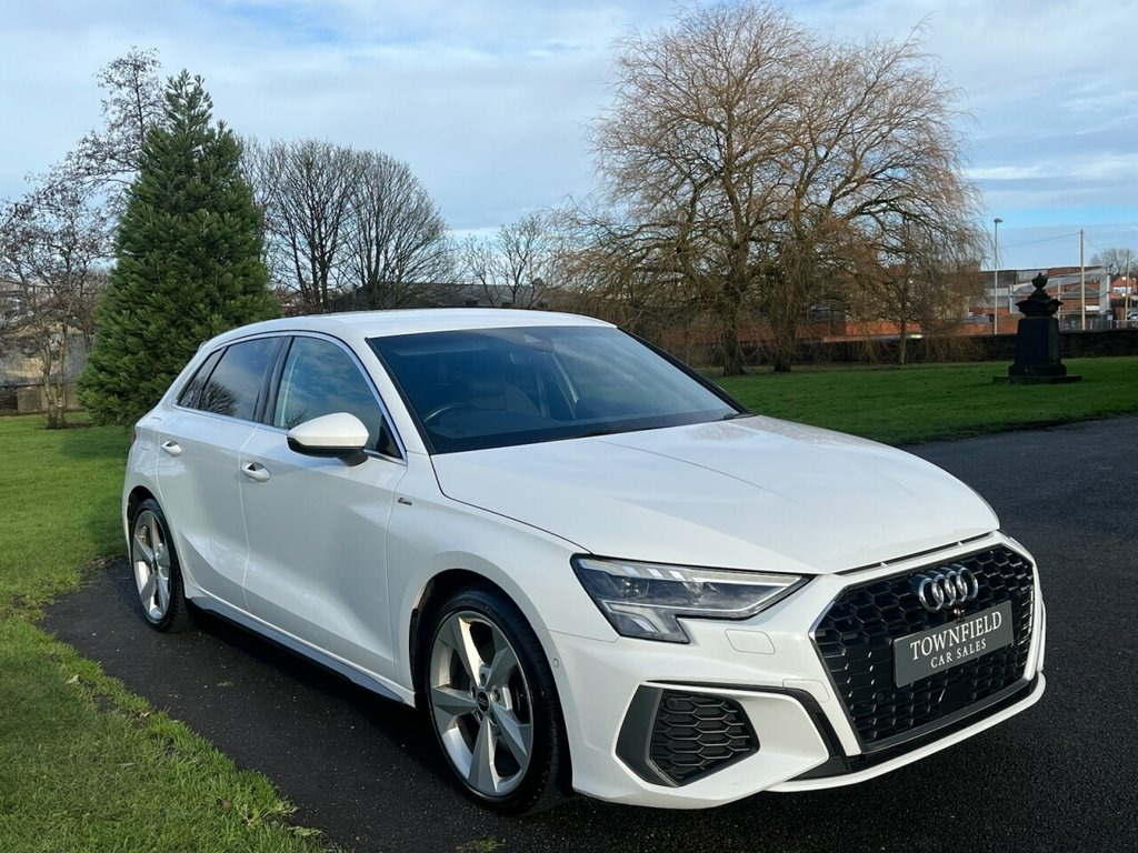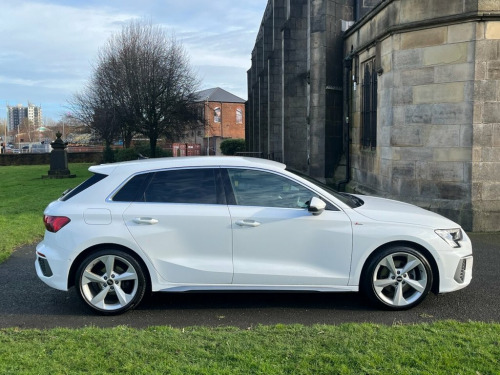 Finished in Glacier White with Black Full Leather S-Line Embossed Heated Sports Seats. This Fantastic Audi A3 TFSI S line from 2020 boasts a clear vehicle history and has had only one owner from new. This stylish hatchback features a 1.5 litre petrol engine, meeting Euro 6 emissions standards. You'll appreciate the Superb Specification which Includes: MMI Satellite Navigation + Bang & Olufsen Premium Sound + Smartphone Interface, 3 Spoke Leather Multi Function Steering Wheel, Cruise Control, Digital Dual Zone Climate Control, Light and Rain Sensor, which automatically activates the headlights, Park Distance Control + Reverse Camera, Heated Electric Powerfold Mirrors, Automatic LED Headlights with LED Rear Lights and Dynamic Rear Indicators enhance both visibility and the car's modern appearance. Experience the responsive performance of this A3, with its impressive 0-60mph acceleration time of just 8.7 seconds. This figure demonstrates how this particular vehicle offers a more engaging driving experience compared to other similar models. The combination of its S line trim, efficient 1.5 litre engine, and advanced features like automatic headlights and climate control makes this Audi A3 a well rounded and desirable choice for everyday driving. Twin Leather - Front Sport Seats with S , Comfort and Sound Package, Steering Wheel - Sports Contour Leather-, Glacier White, 12v Socket and Storage Compartment in Fr, 18in Alloy Wheels - 5-Arm Dynamic Design, 2 USB-C Ports with Charge and Data Funct, 6 Passive Loudspeakers, Airbags - Driver and Front Passenger wit, Aluminium Interior Elements, Aluminium Window Trims, Anti Theft Locking Wheel Bolts, Anti-Theft Alarm, Audi Connect Emergency Call and Service, Audi Connect Navigation and Infotainment, Audi Drive Select, Audi Pre-Sense Front with Pedestrian and, Audi Smartphone Interface, Audi Virtual Cockpit, Auto Dimming and Frameless Rear View Mir, Automatic Start-Stop System with Recuper, Bl