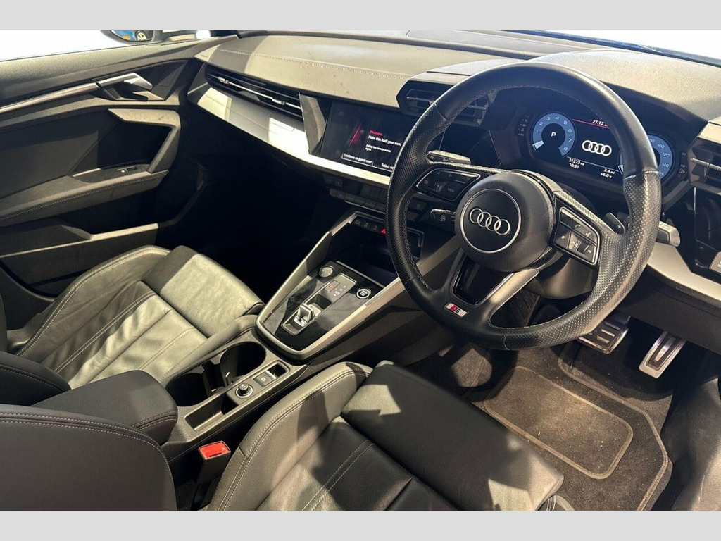 This 2022 Audi A3 TFSI S line boasts an exceptionally low mileage of just 21,500 miles, a significant advantage for a vehicle of its age, and comes with an MOT valid until December 2026 and a clear vehicle history check. This Euro 6 compliant model features a responsive 1.5 litre petrol engine, delivering an impressive 0-60mph acceleration in 8.4 seconds. The S line trim enhances the already sophisticated A3 with striking LED headlights and dynamic rear indicators, complemented by automatic headlights activated by the light and rain sensor. Practicality is also a strong point, with ample boot space for all your needs and rear parking sensors to assist with manoeuvring. Inside, you'll find the comfort of dual-zone electronic climate control, ensuring a pleasant environment for all occupants, and a Bluetooth interface for seamless connectivity on the go. These features, combined with its efficient performance and advanced lighting, position this Audi A3 TFSI S line as a superior choice compared to other vehicles in its class, offering a blend of style, technology, and practicality. 12v Socket and Storage Compartment in Fr, 18in Alloy Wheels - 5-Arm Dynamic Design, 2 USB-C Ports with Charge and Data Funct, 6 Passive Loudspeakers, Airbags - Driver and Front Passenger wit, Aluminium Interior Elements, Aluminium Window Trims, Anti Theft Locking Wheel Bolts, Anti-Theft Alarm, Audi Connect Emergency Call and Service, Audi Connect Navigation and Infotainment, Audi Drive Select, Audi Pre-Sense Front with Pedestrian and, Audi Smartphone Interface, Audi Virtual Cockpit, Auto Dimming and Frameless Rear View Mir, Automatic Start-Stop System with Recuper, Bluetooth Interface, Body Coloured Door Mirrors, Child Locks - Manual, Cloth Headlining in Black, Collision Avoidance Assistant,