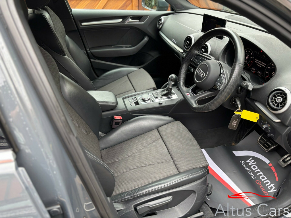 Stunning Nano Grey 2020 Audi A3 1.5 TFSI 35 S line Sportback 5dr Petrol S Tronic Euro 6 (s/s) (150 ps) Only 32184 miles with full Audi Main Dealer service history, including new Main Dealer service, Previously sold as Audi used approved, in March 2023, Brand new MOT, Excellent specification including:- Flat bottom multi-function steering wheel, Audi drive select, Audi smartphone interface, Automatic start/stop system, Colour driver's information system display, Electro - mechanical power assisted steering, Mobile telephone preparation - Bluetooth interface, SD card based MMI navigation, Speed limit display, Voice control system, Voice recognition for navigation system, Sports suspension, 2 USB interfaces and Aux-In jack, Audi music interface, CD player, DAB Digital radio, MMI radio plus with 7'' colour MMI screen and MMI controller, Online entertainment, Chrome exhaust tailpipes, Electrically adjustable and heated door mirrors with integrated LED side indicators, Heated windscreen washer jets, LED daytime running lights, Light and rain sensors, Matt black radiator grille, S line badges on front wings, S Line body styling with front & rear bumpers and side skirts, radiator grille and rear diffuser insert, roof spoiler, Sport specific side air inlet grille and diffuser insert, 3 adjustable rear headrests, 60/40 split folding rear seat, Adjustable front centre armrest, Black cloth headlining, Dual zone electronic climate control, Flat bottom 3 spoke multifunction leather sport steering wheel with gear-shift paddles plus S badging and grips in perforated leather, Illuminated door sill trims with S logo, Isofix child seat preparation for front passenger/outer rear seats inc passenger airbag deactivation including top tether, Stainless steel pedals, LED interior light pack, ABS/EBD, Active bonnet, Active front headrests, Airbags - front driver/passenger, front & rear side, curtain, drivers knee, ASR, EDL, Electromechanical parking brake, ESC - Electronic Stability Control + traction control, Front passenger airbag deactivation, Hill hold assist, Aluminium air vent surrounds, Aluminium trim elements, Matt brushed aluminium inlays, Tyre repair kit Features: AUX/USB connectivity, Satellite navigation, Alarm/immobiliser, DAB radio, Stop/start system, Bluetooth, Climate control, ISOFIX. We are a family business and pride ourselves on supplying premium quality used cars. We will provide 6 months comprehensive warranty & roadside assistance with this Audi plus a full Motorcheck provenance report for your complete peace of mind. Optional 12 months AA cover available plus we can offer 5 day driveaway insurance if needed. P/ex welcome. x usb-c and 1 x usb-c port connection - each with charge and data functions, 6 passive loudspeakers, audi connect emergency call and service, audi connect navigation and infotainment services plus (3 year subscription from new), audi smartphone interface, bluetooth interface, dab digital radio, mmi navigation plus with high resolution 10.1in touchscreen colour display, 18in alloy wheels - 5-arm dynamic design, acoustic windscreen, electric windows - front, exterior mirrors - electrically adjustable - heated and folding - automatically dimming on both sides with built-in led side indicators - including automatic kerb-side function for the passenger-side, privacy glass - dark-tinted rear window - rear door and side window., rear side air outlets - grained matt black, s line bumpers, s line design body styling, s line roof spoiler, audi pre-sense front with pedestrian and cyclist recognition, child locks - electric, esc - electronic stabilisation control inc abs - asr and edl, hill hold assist, aluminium interior elements, audi virtual cockpit - 10.25in display, dual-zone electronic climate control, front sport seats, illuminated door sill trims with aluminium inserts and s logo, inlays - aluminium dark spectrum, led interior light package, pedals and footrest - stainless steel, steering wheel - 3-spoke leather-multi-function with gear-shift paddles, audi drive select, collision avoidance assistant, cruise control, electromechanical power steering - speed-sensitive provides a precise steering feel at high speeds and excellent assistance when parking., lane departure warning, rear parking sensors, sport suspension, voice control system, led headlights with led rear lights and dynamic rear indicators, light and rain sensor
