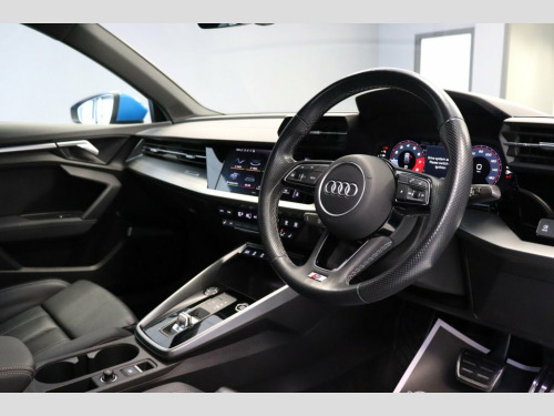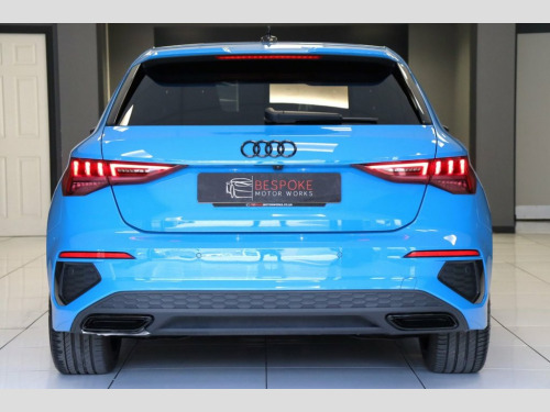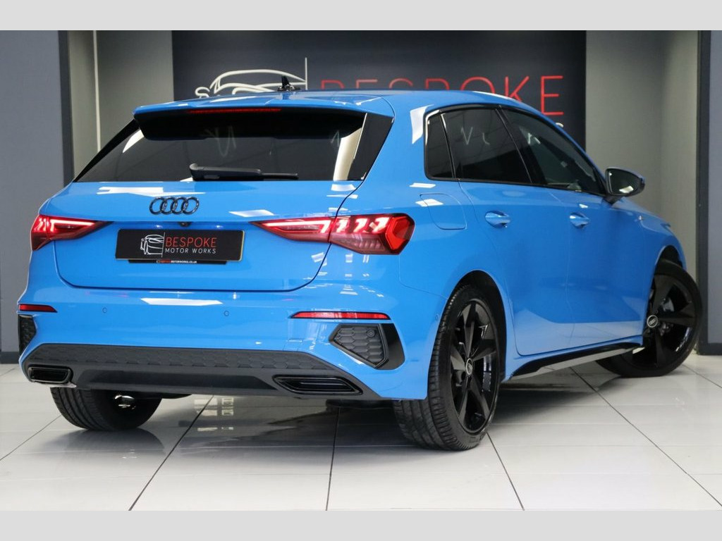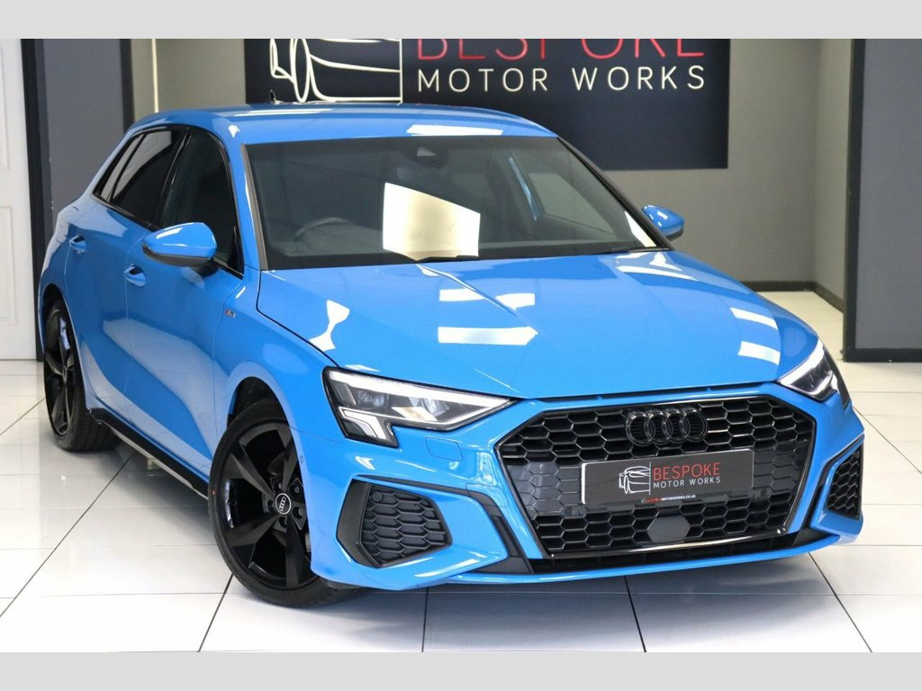 We are pleased to offer this 2020 (70) Audi A3 1.5 TFSI S Line Sportback which is finished in Turbo blue with contrasting 18" gloss black alloy wheels. Our example has the comfort and sound package, full black leather upholstery and Virtual cockpit. This is a car which we have sold before so we know it very well. 18" 5 Arm Dynamic Gloss Black Alloy, Audi Smartphone Interface, Audi Virtual Cockpit, Bluetooth Interface, Comfort and Sound Package, Cruise Control, DAB Digital Radio, Front Sports Seats, Heated and Electric Folding Mirrors, Hill Hold Assist, Lane Departure Warning, LED Headlights with LED Rear Lights and , LED Interior Light Package, Light and Rain Sensor, Privacy Glass, S Line Bumpers, S Line Styling, S Roof Spoiler, Turbo Blue
