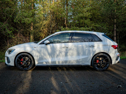 FREE DELIVERY WITHIN 200 MILES – Here we have a stunning Audi A3 S Line Sportback finished in Ibis White. This being the S Line trim means it comes with generous spec from the factory, but this example also boasts a plethora of optional extras which set it apart from the rest: Flat Bottomed Multi-Function Plus 3-Spoke Steering Wheel with Sports Contour Leather-Wrap – Twin Leather Front Sport Seats with S Embossed Logo in Black – RS3 Style Alloy Wheels – Maxton Design Front Splitter – Maxton Design Side Skirts – Maxton Design Rear Diffuser – Spoiler Lip Extension – Quad Exhaust Tips – Heated Front Seats – and more. This car has had 5 services in total (1 Audi, 4 Independent) last carried out at 43,730 miles. The MOT expires November 2026. 3 Month £2000 Claim Limit Warranty is included with the sale but the option to upgrade to a 12M, 24M, & 36M £5000 Claim Limit Nation Wide Premium Autoguard Warranty with Breakdown Cover is available. Multiple Finance Options, Competitive Part Exchange Prices. All Cars Are HPI, MotorCheck & Experian Clear. Further Vehicle Delivery Options Also Available. All Rights Reserved - Whitethor cars exercise all reasonable care and skill in providing you with vehicle information and data. The specification is attained through HPI, Experian & Autotrader VRM. Options Sold as packs may be shown individually, spec check is a guide so please contact us or physically verify any info that is crucial.