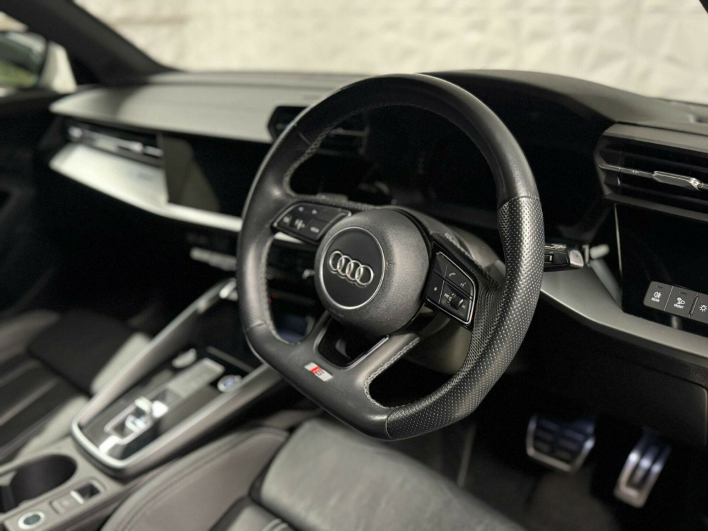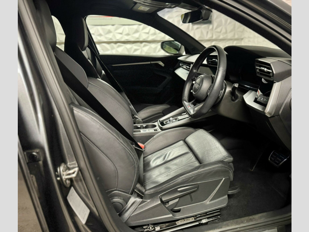 This 2021 Audi A3 TFSI S line boasts a full service history and a clear vehicle history check, offering you complete peace of mind. This stylish hatchback is equipped with a 1.5 litre petrol engine, meeting Euro 6 emissions standards. Its MOT is valid until December 2026, further underscoring its excellent condition.Experience superior visibility with LED headlights and dynamic rear indicators, complemented by automatic headlights and a light and rain sensor. Stay comfortable in all conditions with dual zone electronic climate control, and enjoy seamless connectivity through the Bluetooth interface. Parking is made easier with rear parking sensors. This A3 also offers generous boot space for your convenience. Its performance is notable, achieving 0-62mph in just 8.4 seconds, demonstrating its responsive acceleration which sets it apart from many other vehicles in its class.. 12v Socket and Storage Compartment in Front Centre Console, 18in Alloy Wheels - 5-Arm Dynamic Design, 2 USB-C Ports with Charge and Data Functions, 6 Passive Loudspeakers, Airbags - Driver and Front Passenger with Passenger Airbag Deactivation, Aluminium Interior Elements, Aluminium Window Trims, Anti Theft Locking Wheel Bolts, Anti-Theft Alarm, Audi Connect Emergency Call and Service, Audi Connect Navigation and Infotainment Services Plus (3 Year Subscription From New), Audi Drive Select, Audi Pre-Sense Front with Pedestrian and Cyclist Recognition, Audi Smartphone Interface, Audi Virtual Cockpit, Auto Dimming and Frameless Rear View Mirror, Automatic Start-Stop System with Recuperation, Bluetooth Interface, Body Coloured Door Mirrors, Cloth Headlining in Black, Collision Avoidance Assistant, Cruise Control, DAB Digital Radio, Dual-Zone Electronic Climate Control, ESC - Electronic Stabilisation Control inc ABS - ASR and EDL, Electric Windows - Front, Electromechanical Power Steering, Electronically Operated Child Locks, Exterior Mirrors - Electrically Adjustable - Heated and Folding - Automatically Dimming on Both Sides with Built-In LED Side Indicators - Including Automatic Kerb-Side Function for the Passenger-Side, First Aid Kit and Warning Triangle and 2 Safety Vests, Front Side Airbags with Head Airbags and Interaction Airbag, Front Sports Seats, Front and Rear Centre Armrest in Leather, Front and Rear Floor Mats, Hill Hold Assist, I-Size and Top Tether Child Seat Mounting for the Outer Rear Seats, Illuminated Door Sill Trims with Aluminium Inserts and S Logo, Inlays - Dark Spectrum Aluminium, LED Headlights with LED Rear Lights and Dynamic Rear Indicators, LED Interior Light Package, Lane Departure Warning, Light and Rain Sensor, Luggage Compartment Floor Covering, MMI Navigation Plus with High Resolution 10.1in Touchscreen Colour Display, Manual Boot Compartment Lid, Pedals and Footrest - Stainless Steel, Privacy Glass, Privacy Glass - Dark-Tinted Rear Window - Rear Door and Side Window., Rear Parking Sensors, Rear Side Air Outlets - Grained Matt Black, Remote Central Locking, S Line Bumpers, S Line Styling, S Roof Spoiler, Seat Belt Monitoring, Split-Folding Rear Seat Bench can be Split 40: 20: 40 or Fully, with Centre Armrest and Cup Holders, Sport Suspension, Steering Wheel - 3-Spoke Leather-Multi-Function, Tool Kit, Tyre Pressure Loss Indicator, Tyre Repair Kit, Voice Control System with Natural Language Interaction, Windscreen with Acoustic Glazing, Driver Assistance Package, Twin Leather - Front Sport Seats with S Embossed Logo - Black. Full service history