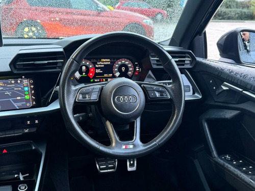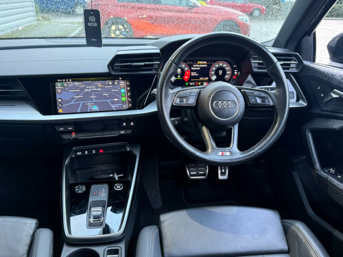 This 2020 Audi A3 TFSI S line boasts a clear vehicle history, offering you peace of mind. Powered by a 1.5 litre petrol engine and meeting Euro 6 emissions standards, this S line trim model combines style with efficiency. Inside, you'll find a Bluetooth interface for seamless connectivity, dual zone electronic climate control to keep everyone comfortable, and a light and rain sensor that automatically manages the headlights. The advanced LED headlights with dynamic rear indicators ensure excellent visibility, while rear parking sensors make manoeuvring simple.Experience impressive performance with an acceleration of 0 to 62 miles per hour in just 8.4 seconds, a figure that demonstrates its responsiveness compared to other vehicles in its class. This Audi A3 also offers generous boot space, making it a practical choice for everyday use and longer journeys alike. x usb-c and 1 x usb-c port connection - each with charge and data functions, 12v socket and storage compartment in front centre console, 18in alloy wheels - 5-arm dynamic design, 6 passive loudspeakers, acoustic windscreen, airbags - front side and head system, aluminium interior elements, aluminium window trims, anti theft locking wheel bolts, anti-theft alarm, audi connect emergency call and service, audi connect navigation and infotainment services plus (3 year subscription from new), audi drive select, audi pre-sense front with pedestrian and cyclist recognition, audi smartphone interface, audi virtual cockpit - 10.25in display, auto dimming and frameless rear view mirror, bluetooth interface, body coloured door mirrors, child locks - electric, cloth headlining in black, collision avoidance assistant, cruise control, dab digital radio, driver and front passenger airbag with front passenger airbag deactivation, dual-zone electronic climate control, esc - electronic stabilisation control inc abs - asr and edl, electric windows - front, electromechanical power steering - speed-sensitive provides a precise steering feel at high speeds and excellent assistance when parking., exterior mirrors - electrically adjustable - heated and folding - automatically dimming on both sides with built-in led side indicators - including automatic kerb-side function for the passenger-side, first aid kit and warning triangle, front sport seats, front and rear centre armrest in leather, front and rear floor mats, hill hold assist, i-size and top tether child seat mounting for the outer rear seats, illuminated door sill trims with aluminium inserts and s logo, inlays - aluminium dark spectrum, interior lighting, led headlights with led rear lights and dynamic rear indicators, led interior light package, lane departure warning, light and rain sensor, luggage compartment floor covering, mmi navigation plus with high resolution 10.1in touchscreen colour display, manual boot compartment lid, pedals and footrest - stainless steel, privacy glass - dark-tinted rear window - rear door and side window., rear parking sensors, rear side air outlets - grained matt black, remote central locking, s line bumpers, s line design body styling, s line roof spoiler, seat belt monitoring, split-folding rear seat bench can be split 40: 20: 40 or fully, with centre armrest and cup holders, sport suspension, steering wheel - 3-spoke leather-multi-function with gear-shift paddles, tool kit, tyre pressure loss indicator, tyre repair kit, voice control system