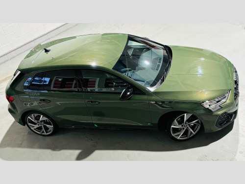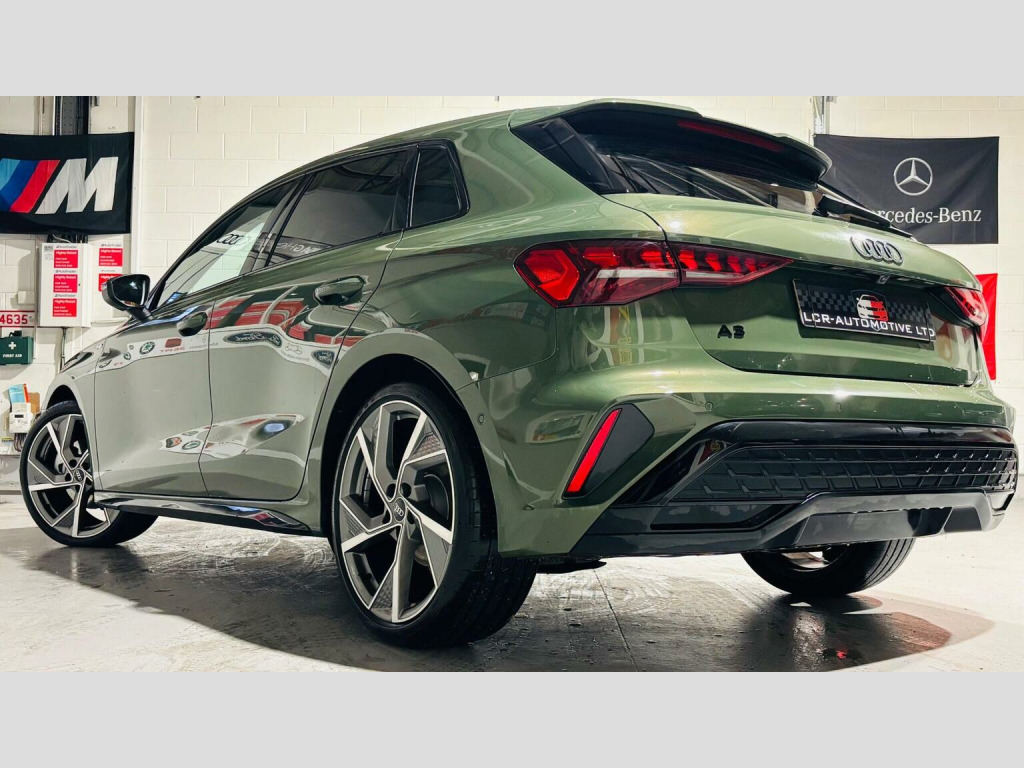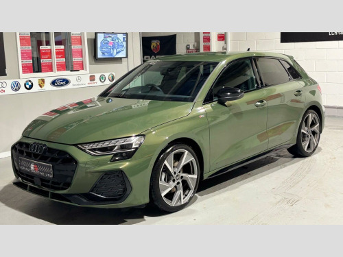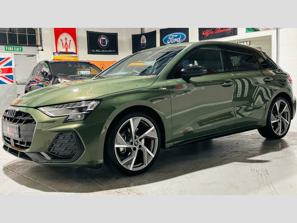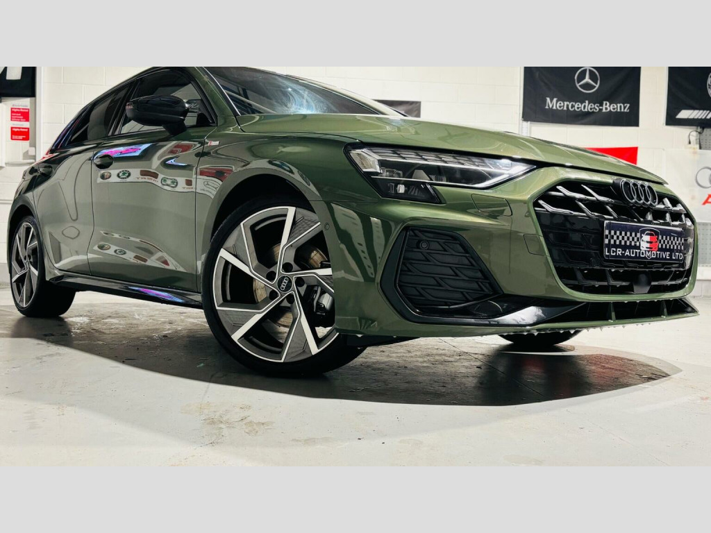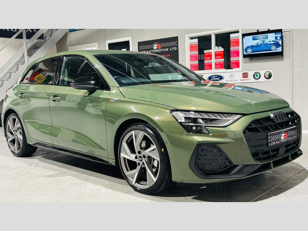 WOW!!! TOTALLY STUNNING!! AS NEW!! Metallic Olive Green , Black Edition S Tronic Auto, 1,Owner, (FINANCE AVAILABLE) LCR-AUTOMOTIVE LTD Are Very Proud To Offer This Audi A3 TFSI Black Edition, registered in 2025, boasts a single owner from new, offering excellent provenance. This stylish hatchback features a 1.5 litre petrol engine, meeting Euro 6 emission standards. The Black Edition trim is enhanced by a suite of desirable features, including the Technology Pack Pro, which brings LED headlights, keyless entry, an opening panoramic sunroof, and a premium branded sound system. For added convenience and safety, it also includes rear parking assistance with a camera, adaptive cruise control, and attention and fatigue detection. The striking 19 inch alloy wheels in a black metallic gloss turned finish complete the assertive look. This particular Audi A3 stands out with its impressive acceleration, reaching 0-62mph in just 8.1 seconds, demonstrating its responsive performance. The inclusion of heated seats and a large boot space further enhance its practicality for everyday use and longer journeys. These features, combined with its single ownership and comprehensive technology pack, position this A3 as a superior choice compared to similar vehicles on the market, offering a blend of performance, comfort, and advanced features. WE ARE VERY PROUD TO BE AWARDED THE AUTOTRADER HIGHLY RATED AWARD FOR CUSTOMER SERVICE FOR THE 5TH CONSECUTIVE YEAR AND PLEASE CHECKOUT ALL OF OUR GOOGLE AND AUTOTRADER 5 STAR REVIEWS TO GIVE YOU CONFIDENCE IN US AND OUR CAR.