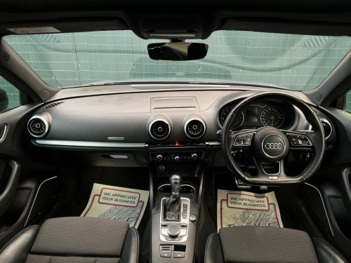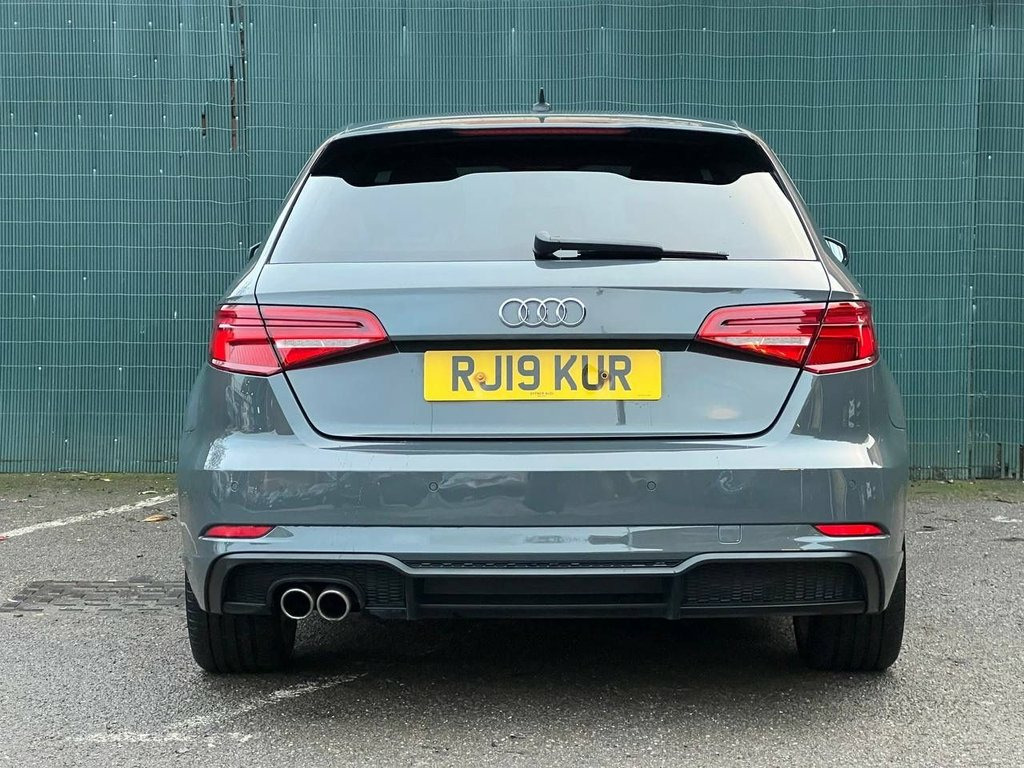 This 2019 Audi A3 TFSI Black Edition boasts a clear vehicle history, offering you peace of mind. This stylish hatchback features a 1.5 litre petrol engine and meets Euro 6 emissions standards. Inside, you'll find a dual zone electronic climate control system for personalised comfort, an auto dimming rear view mirror that activates with the light and rain sensor, and a Bluetooth interface for seamless connectivity. The Black Edition trim also includes striking LED headlights with dynamic rear indicators, ensuring excellent visibility. Experience impressive performance with an acceleration of 0 to 60 miles per hour in just 8.2 seconds. This Audi A3 also offers low CO2 emissions, making it an environmentally conscious choice. Practicality is a key strength, with a large boot space perfect for luggage or shopping. Rear parking sensors, including parking assistance, make manoeuvring in tight spots effortless. These features collectively demonstrate how this Audi A3 offers a superior driving experience compared to other vehicles in its class. 18in Alloy Wheels - 10-Spoke Design Matt, 2 x USB Charging Ports and 1 x AUX-IN, 6-Airbag System with Knee Airbag for Dri, Aluminium Interior Elements, Anti Theft Locking Wheel Bolts, Anti-Theft Alarm, Audi Connect, Audi Connect Infotainment Services - 3 M, Audi Drive Select, Audi Smartphone Interface, Audi Sound System, Auto-Dimming Rear-View Mirror with Light, Black Styling Package, Bluetooth Interface, CD Drive, Chrome-Plated Exhaust Tailpipe Trim, Cloth Headlining in Black, Colour Drivers Information System - DIS, Cruise Control, DAB Digital Radio, Door Mirrors - Black Housing, Door Mirrors - Electrically Adjustable a, Dual-Zone Electronic Climate Control, ESC - Electronic Stabilisation