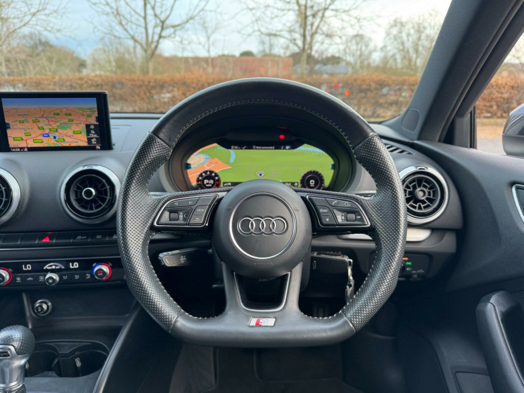 2019 Audi A3 1.5 TFSI Black Edition S tronic - 43,500 mile - £16989This 2019 Audi A3 1.5 TFSI S line is a sharp, premium four-door that combines sleek styling, advanced tech, and refined performance. Finished in Nano Grey with the sought-after Black Edition trim, Virtual Cockpit, and Apple CarPlay, this is a superb example of Audi's compact executive hatchback.Under the bonnet is a 1.5-litre TFSI petrol engine producing 150 PS, paired with the smooth and responsive S tronic automatic gearbox, delivering a perfect balance of performance and fuel efficiency and it's ULEZ compliant.Spec highlights include: • Hill Hold Assist • Rear view Camera•Black Edition Styling Pack (Sportier bumpers, side skirts, badging)•Audi Virtual Cockpit (12.3'' Customisable Digital Display)•Apple CarPlay & Android Auto•MMI Navigation Plus with Touchpad Interface•S line Sports Seats with Embossed Logo & Part-Leather Trim•LED Headlights with LED Daytime Running Lights•Rear Parking Sensors•Cruise Control with Speed Limiter•Audi Drive Select (Comfort, Auto, Dynamic, Efficiency)•Dual-Zone Climate Control•Bluetooth with Audio Streaming & Voice Control•Flat-Bottom Leather Multifunction Steering Wheel•18'' Black Edition Alloy Wheels (original)Stylish, well-equipped and sporty, this A3 delivers premium Audi feel in a compact, efficient, and ULEZ-compliant package perfect for commuting, long journeys, or professional use.Contact us today to book a viewing, or arrange finance delivery, we're here to help every step of the way. ar-view camera, technology pack, black roof rails, 18in alloy wheels - 10-spoke design matt titanium look with diamond cut finish, 2 x usb charging ports and 1 x aux-in, 6-airbag system with knee airbag for driver, aluminium interior elements, anti theft locking wheel bolts, anti-theft alarm, audi connect, audi connect infotainment services - 3 month trial, audi drive select, audi smartphone interface, audi sound system, auto-dimming rear-view mirror with light and rain sensor, black styling package, bluetooth interface, cd drive, chrome-plated exhaust tailpipe trim, cloth headlining in black, colour drivers information system - dis, cruise control, dab digital radio, door mirrors - black housing, door mirrors - electrically adjustable and heated with integrated led side indicators, dual-zone electronic climate control, esc - electronic stabilisation control inc abs - asr and edl, electric windows - front and rear, electromechanical parking brake, electromechanical power steering, first aid kit and warning triangle, front centre armrest, front and rear floor mats, heated windscreen washer jets, hill hold assist, isofix child seat mounting and top tether, illuminated door sill trims with s logo, inlays - matt brushed aluminium, led headlights with led rear lights and dynamic rear indicators, led interior light package, lashing points in luggage compartment, mmi navigation - sd card based, mmi radio plus with 7in electrically retractable colour mmi screen, manual seat adjustment, non-smoking package, pedals in stainless steel, privacy glass, rear parking sensors, remote central locking with 2 fold away keys, s line badges on the front wings, s line design body styling, seat belt monitoring, split folding rear seat bench - 60-40 or fully, sport suspension, steering wheel - 3-spoke leather-multifunction-flat bottomed-shift paddles, storage compartments in the door side trims-centre console-under drivers seat, storage package, tool kit, tyre pressure warning light, tyre repair kit, voice control system