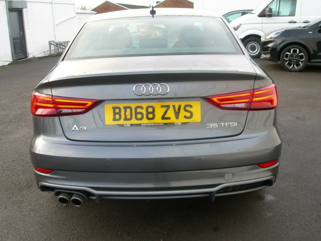 This 2018 Audi A3 1.5 TFSI CoD 35 S line S Tronic Euro 6 (s/s) 4dr Saloon is currently available for £12,495 in Glasgow with Petrol engine and Automatic gearbox. For more information or to arrange a viewing, click here to send us an email using form below.