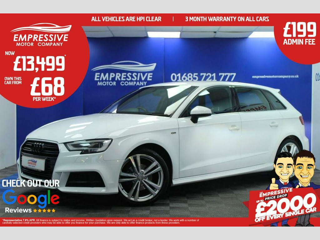 ****AWESOME AUDI**** Just in! This Stunning 2019 AUDI A3 1.5 TFSI CoD 35 S line Sportback 5dr Petrol Manual Euro 6 (s/s) (150 ps) Finished In White! 69,264 miles 1.4L petrol Parking sensors Half leather seats Automatic LED headlights Multi media interface system with sat nav Bluetooth connectivity USB Aux Automatic 2 zone climate control Start stop Traction control Eco mode Sport mode Electric handbrake Voice control Cruise control Speed limiter Auto wipers Electric heated wing mirrors 18in Alloy Wheels - 5-Parallel Spoke Des, 2 x USB Charging Ports and 1 x AUX-IN, 6-Airbag System with Knee Airbag for Dri, Aluminium Interior Elements, Aluminium Window Trims, Anti Theft Locking Wheel Bolts, Anti-Theft Alarm, Audi Connect, Audi Connect Infotainment Services - 3 M, Audi Drive Select, Audi Smartphone Interface, Audi Sound System, Auto-Dimming Rear-View Mirror with Light, Bluetooth Interface, Body Coloured Door Mirrors, CD Drive, Chrome-Plated Exhaust Tailpipe Trim, Cloth Headlining in Black, Colour Drivers Information System - DIS, Cruise Control, DAB Digital Radio, Door Mirrors - Electrically Adjustable a, Dual-Zone Electronic Climate Control, Electric Windows - Front and Rea