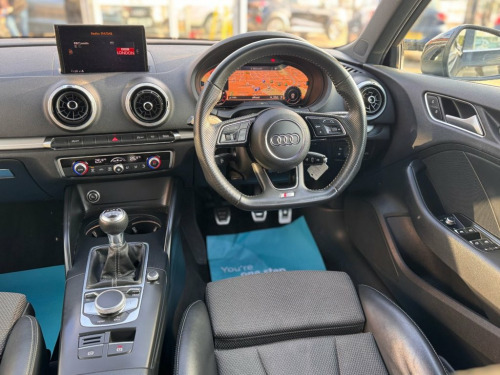 FLC is proud to present this Audi A3 S Line - a premium hatchback that combines sporty design with everyday practicality. Finished in Mythos Black Metallic and set on 18" 5-Spoke Alloy Wheels in Gloss Black & Diamond Cut, this A3 carries a confident stance and sharp presence on the road. This example is in excellent condition throughout, supported by 6 Audi Service records - recently carried out at 62,329 miles, a valid MOT until December 2026 with no advisores, and showing only minor age-related blemishes. Inside, the interior reflects Audi's commitment to quality and technology. Featuring Virtual Cockpit, Sat Nav, Dual-Zone Climate Control, Rear Parking Sensors, Bluetooth Connectivity, Apple CarPlay/Android Auto, Electric Windows & Mirrors, it offers a well-equipped, modern interior environment that combines convenience with premium touches. Every detail contributes to a comfortable and connected driving experience. All part exchanges considered – contact FLC today to arrange a viewing. Sequence Cloth-Leather - S Embossed Spor, Mythos Black, 18in Alloy Wheels - 5-Parallel Spoke Des, MMI Navigation - SD Card Based, Bluetooth Interface, Rear Parking Sensors, Steering Wheel - 3-Spoke Leather-Multifu, Sport Suspension, Audi Smartphone Interface, Cruise Control, 2 x USB Charging Ports and 1 x AUX-IN, MMI Radio Plus with 7in Electrically Ret, DAB Digital Radio, Audi Connect, 6-Airbag System with Knee Airbag for Dri, S Line Design Body Styling, S Line Badges on the Front Wings, Aluminium Interior Elements, Aluminium Window Trims, Anti Theft Locking Wheel Bolts, Anti-Theft Alarm, Audi Connect Infotainment Services - 3 M, Audi Drive Select, Audi Sound System, Auto-Dimming Rear-View