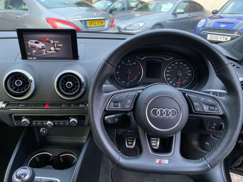 ULEZ Petrol. This Audi A3 S Line 35TFSI Hatchback Manual 6 speed is finished in Mythos Black metallic with S Embossed Cloth/leather seats. It is fitted with automatic LED Xenon lights with headlamp wash, cruise control, DAB radio, Sat Nav, Bluetooth, heated door mirrors, electric windows 18" Alloy Wheels, 2 x USB Charging Ports and 1 x AUX-IN, Rear park assist, hill assist plus more. 6-Airbag System with Knee Airbag for Driver, 8 Passive Speakers, Anti Theft Locking Wheel Bolts, Anti-Theft Alarm. This A3 has only had two registered keepers from new and has had the following services carried out with Audi and Independent garages at 6584/10671/21878 and 27973 miles. Current MOT is January 2027 with 2 new front tyres fitted by us. and It comes with 2 keys. We will supply this car with a service if required and 12 months RAC Insured warranty. 12 months Breakdown assist. Finance is available from 9.9% APR subject to status and extended warranties are also available. Presented in an Undercover High Street Showroom. This A3 has been very well cared for and has no unwanted odours present. 18in Alloy Wheels - 5-Parallel Spoke Des, 2 x USB Charging Ports and 1 x AUX-IN, 6-Airbag System with Knee Airbag for Dri, Aluminium Interior Elements, Aluminium Window Trims, Anti Theft Locking Wheel Bolts, Anti-Theft Alarm, Audi Connect, Audi Connect Infotainment Services - 3 M, Audi Drive Select, Audi Smartphone Interface, Audi Sound System, Auto-Dimming Rear-View Mirror with Light, Bluetooth Interface, Body Coloured Door Mirrors, CD Drive, Chrome-Plated Exhaust Tailpipe Trim, Cloth Headlining in Black, Colour Drivers Information System - DIS, Cruise Control, DAB Digital Radio, Door Mirrors - Electrically Adjustable a, Dual-Zone Electronic Climate Control, Electric Windows - Front and Rea