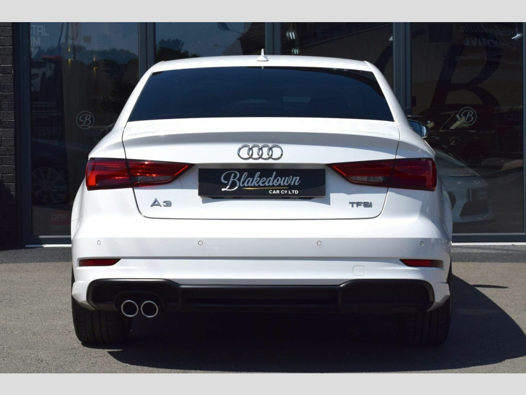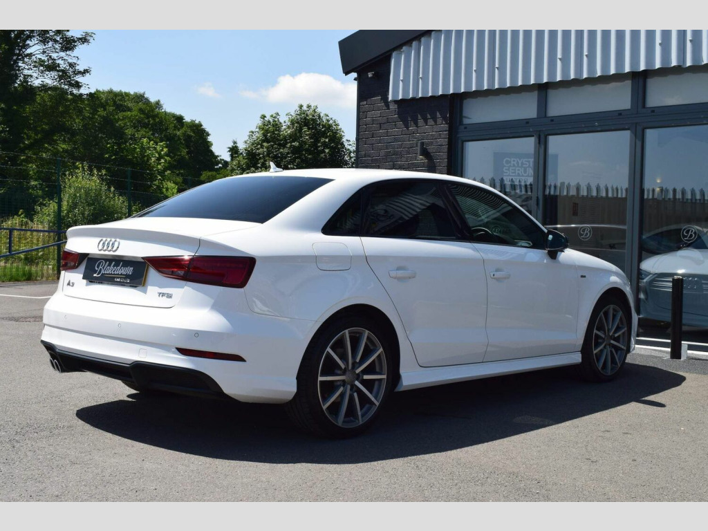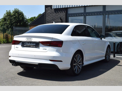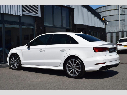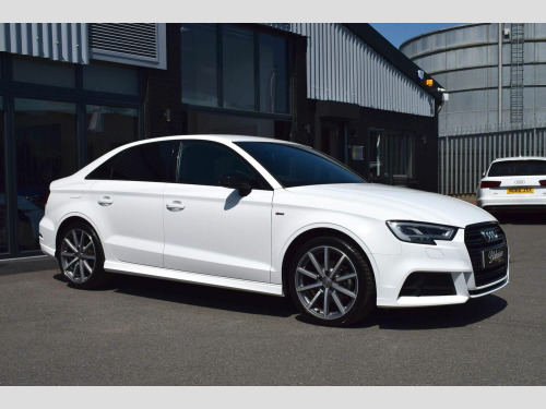 2018 68 (Facelift) Audi A3 Saloon 1.5 TFSI S Line Black Edition finished in popular Ibis White with black part leather interior. Just 22400 miles covered. This is supported by full service history - two Audi services plus a further service in house ready for the next owner meaning no maintenance required for the foreseeable future. Car supplied with two keys, all correct handbooks, documentation etc. Great condition throughout - interior very clean and well cared for with minimal signs of use, bodywork equally good and wheels unmarked. Well equipped with features to include: 18in Alloy Wheels - 10-Spoke Design Matt Titanium Look with Diamond Cut Finish, 2 x USB Charging Ports and 1 x AUX-IN, Audi Smartphone Interface, Audi Sound System, Auto-Dimming Rear-View Mirror with Light and Rain Sensor, Black Styling Package, Bluetooth Interface, Cruise Control, DAB Digital Radio, Dual-Zone Electronic Climate Control, Illuminated Door Sill Trims with S Logo, Inlays - Matt Brushed Aluminium, LED Headlights with LED Rear Lights and Dynamic Rear Indicators, LED Interior Light PackageMMI Navigation - SD Card Based, MMI Radio Plus with 7in Electrically Retractable Colour MMI Screen, Privacy Glass, Rear Parking Sensors, Sport SuspensionSteering Wheel - 3-Spoke Leather-Multifunction-Flat Bottomed-Shift Paddles, Storage Package, Tyre Pressure Warning Light etc. FINANCE FROM 6.9% APR | GTECHNIQ DETAILING & CERAMIC COATINGS | XPEL PAINT PROTECTION FILM