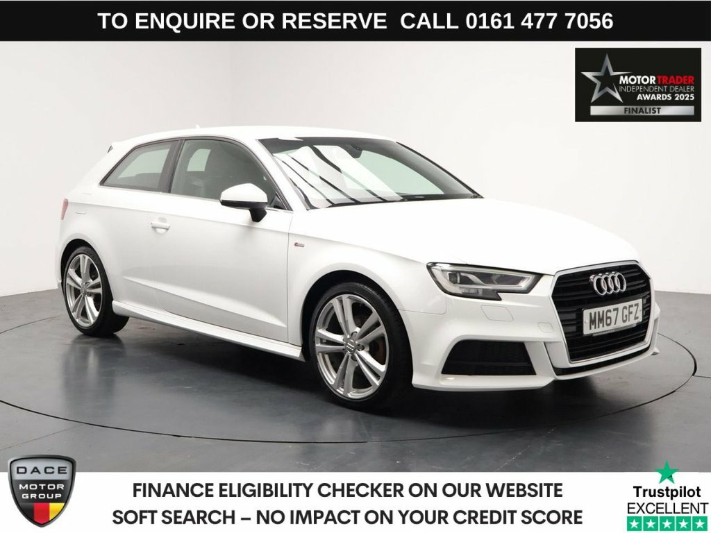 FINISHED IN IBIS WHITE, COMPLIMENTED WITH BLACK LEATHER AND ALCANTARA SUEDE S-LINE SEATS - COMES WITH FULL SERVICE HISTORY + APPLE CAR PLAY + ANDROID AUTO + SATELLITE NAVIGATION + BLUETOOTH CONNECTIVITY + DUAL CLIMATE CONTROL + CRUISE CONTROL + DRIVER MODES + REAR PARKING SENSORS + DAB RADIO + MULTI FUNCTION STEERING WHEEL + AUTOMATIC STOP / START FUNCTION + ELECTRIC FOLDING AND HEATED MIRRORS + ELECTRIC WINDOWS + AIR CONDITIONING + STYLED WITH 18 INCH ALLOYS ------------FINANCE------------ ***NOT SURE YOU'RE ELIGIBLE FOR CAR FINANCE? *** CHECK TODAY USING THE FREE CAR FINANCE CHECKER ON OUR WEBSITE.** Dace Motor Group have a dedicated team of finance experts waiting to help with your enquiry. Over the past 30 years we have forged relationships with the country's largest and best finance houses. We are specialists in Hire Purchase (HP), Personal Contract Purchase (PCP) as well as assisting those with poor credit or previous credit problems. ------------ABOUT US------------ At Dace Car Supermarket Stockport, we are very proud to have been named the first Trading Standards Approved Car Retailer, with process and procedures developed with and applauded by them. We do recommend that customers RESERVE their choice of vehicle prior to making their trip to avoid potentially missing it. Visit our website https://www.dacecarsupermarket.co.uk/ At Dace Specialist Car Centre Stockport we carry 700 cars in group stock. - TO ENQUIRE OR RESERVE PLEASE CALL 01614777056 - ----- 18in Alloy Wheels - 5-Parallel Spoke Des, 2 x USB Charging Ports and 1 x AUX-IN, 6-Airbag System with Knee Airbag for Dri, 8 Passive Speakers, Aluminium Interior Elements, Aluminium Window Trims, Anti Theft Locking Wheel Bolts, Anti-Theft Alarm, Audi Connect Infotainment Services - 3 M, Audi Drive Select, Audi Smartphone Interface, Auto-Dimming Rear-View Mirror, Bluetooth Interface, Body Coloured Door Mirrors, CD Drive, Chrome-Plated Exhaust Tailpipe Trim, Cloth Headlining in Black, Colour Drivers Information System - DIS, Cruise Control, DAB Digital Radio, Door Mirrors - Electrically Adjustable a, Dual-Zone Electronic Climate Control, Electric Windows - Front, Electromechanical Parking Brak