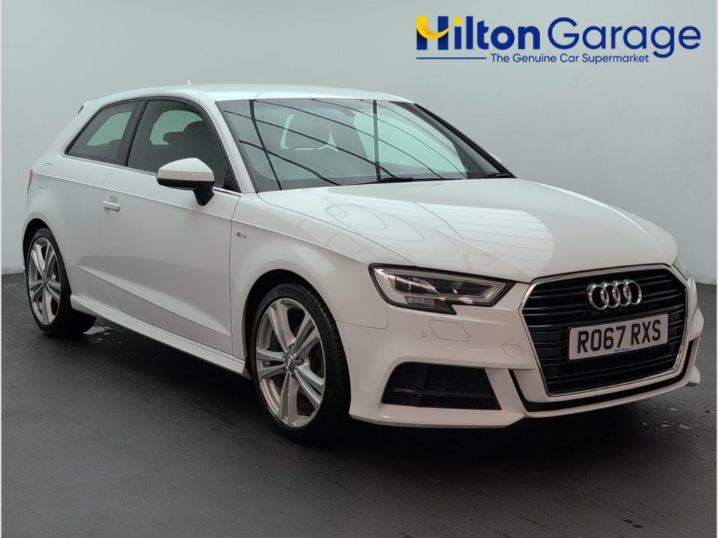 Stunning Audi A3 in White with Heated Seats - SATNAV - Upgraded Sound System - 18" Alloy Wheels - Bluetooth - Cruise Control Service History: 27/09/2018 at 6k, 05/02/2020 at 19k, 21/10/2021 at 29k, 21/11/2023 at 33k, 24/06/25 at 40089 miles. The Audi A3 1.5 TFSI CoD S line Hatchback is a premium compact built for drivers who crave style and sportiness. Its 150PS turbocharged petrol engine with S tronic auto blasts 0–62mph in around 8.2s, while delivering nearly 60mpg and Euro 6 efficiency. With sleek S line styling, crisp handling, and a practical 380L boot, it's a refined everyday performer. 18in Alloy Wheels - 5-Parallel Spoke Des, 2 x USB Charging Ports and 1 x AUX-IN, 6-Airbag System with Knee Airbag for Dri, 8 Passive Speakers, Aluminium Interior Elements, Aluminium Window Trims, Anti Theft Locking Wheel Bolts, Anti-Theft Alarm, Audi Connect Infotainment Services - 3 M, Audi Drive Select, Audi Smartphone Interface, Auto-Dimming Rear-View Mirror, Bluetooth Interface, Body Coloured Door Mirrors, CD Drive, Chrome-Plated Exhaust Tailpipe Trim, Cloth Headlining in Black, Colour Drivers Information System - DIS, Cruise Control, DAB Digital Radio, Door Mirrors - Electrically Adjustable a, Dual-Zone Electronic Climate Control, Electric Windows - Front, Electromechanical Parking Brak