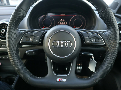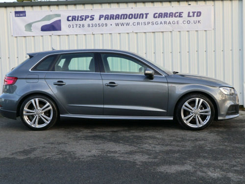 This lovely low mileage A3 S-line has had just one owner from new and benefits from a full service history. The 1.5 TFSI engine develops a very flexible 150HPB with the 6 speed manual gearbox. Standard specification includes the Audi virtual cockpit - 12.3'' high-resolution LCD display with fully customisable instrument cluster, DAB Digital radio and a Space saver spare wheel. in alloy wheels - 5-parallel spoke design with diamond cut finish, aluminium window trims, chrome-plated exhaust tailpipe trim, door mirrors - electrically adjustable and heated with integrated led side indicators, electric windows - front, heated windscreen washer jets, s line design body styling, space saver spare wheel, 2 x usb charging ports and 1 x aux-in, 8 passive speakers, audi smartphone interface, bluetooth interface, cd drive, dab digital radio, mmi navigation - sd card based, mmi radio plus with 7in electrically retractable colour mmi screen, online media streaming - audi mmi connect app required, 6-airbag system with knee airbag for driver, anti-theft alarm, audi hill hold assist, esc - electronic stabilisation control inc abs - asr and edl, electromechanical parking brake, isofix child seat mounting and top tether, remote central locking with 2 fold away keys, auto-dimming rear-view mirror with light and rain sensor, dual-zone electronic climate control, email and text messages can be displayed on your vehicles mmi, front centre armrest, illuminated door sill trims with s logo, inlays - matt brushed aluminium, led interior light package, pedals in stainless steel, split folding rear seat bench - 60-40 or fully, steering wheel - 3-spoke leather-multifunction-flat bottomed, tool kit and car jack, audi drive select, colour drivers information system - dis, cruise control, rear parking sensors, sport suspension, tyre pressure warning light, led headlights with led rear lights and dynamic rear indicators