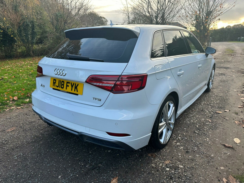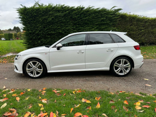 JUST ARRIVED!!Another very popular Audi A3 1.5 TFSI CoD S line Sportback S Tronic 5door in Glacier White. This car has been well cared for and is in excellent condition with a Full Service History totalling x6 Services. The car was last Serviced in March 25 and the MOT runs to 30/5/26 with NO Advisories. It has a great specification that includes Half Leather Seats, 18inc Alloys, MMI Navigation - SD Card Based, MMI Radio Plus with 7in Electrically Retractable Colour MMI Screen, DAB, Cruise Control, Heated Front Seats, Audi Smartphone Interface - CarPlay/Android Auto, Privacy Glass, Bluetooth, Rear Parking Sensors, Dual Zone Climate Control to name just a few. It is supplied with 2 keys, 6 Months RAC Platinum Warranty and 12 Months Breakdown Cover.NO ULEZ charge.Competitive finance packages arranged with rates starting from 9.9% APR (Subject to status).Part exchange welcome. HPI Clear. Call now to arrange a viewing. ivacy glass, heated front seats, sequence cloth-leather - s embossed sports seats - black with rock grey stitching, 18in alloy wheels - 5-parallel spoke design with diamond cut finish, 2 x usb charging ports and 1 x aux-in, 6-airbag system with knee airbag for driver, 8 passive speakers, aluminium interior elements, aluminium window trims, anti theft locking wheel bolts, anti-theft alarm, audi connect infotainment services - 3 month trial, audi drive select, audi hill hold assist, audi smartphone interface, auto-dimming rear-view mirror with light and rain sensor, bluetooth interface, body coloured door mirrors, cd drive, chrome-plated exhaust tailpipe trim, cloth headlining in black, colour drivers information system - dis, cruise control, dab digital radio, door mirrors - electrically adjustable and heated with integrated led side indicators, dual-zone electronic climate control, esc - electronic stabilisation control inc abs - asr and edl, electric windows - front, electromechanical parking brake, electromechanical power steering, email and text messages can be displayed on your vehicles mmi, first aid kit and warning triangle, front centre armrest, front and rear floor mats, heated windscreen washer jets, isofix child seat mounting and top tether, illuminated door sill trims with s logo, inlays - matt brushed aluminium, led headlights with led rear lights and dynamic rear indicators, led interior light package, lashing points in luggage compartment, mmi navigation - sd card based, mmi radio plus with 7in electrically retractable colour mmi screen, non-smoking package, online media streaming - audi mmi connect app required, pedals in stainless steel, rear parking sensors, remote central locking with 2 fold away keys, s line badges on the front wings, s line design body styling, seat belt monitoring, space saver spare wheel, split folding rear seat bench - 60-40 or fully, sport suspension, steering wheel - 3-spoke leather-multifunction-flat bottomed-shift paddles, storage compartments in the door side trims-centre console-under drivers seat, storage package, tool kit and car jack, tyre pressure warning light