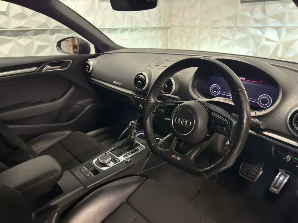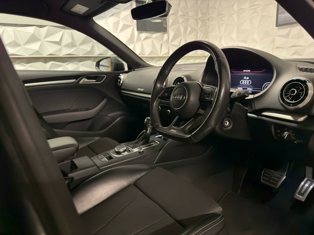 With a full service history up to 68,833 miles on 14th April 2025 and an MOT valid until December 2026, this 2018 Audi A3 TFSI S line offers excellent peace of mind. This Euro 6 compliant model features a 1.5 litre petrol engine and is presented in the sought after S line trim. Notable features include privacy glass for added discretion, heated, electrically adjustable, folding and auto dimming door mirrors, and rear parking sensors to aid manoeuvring. Inside, you'll find a Bluetooth interface for seamless connectivity and dual zone electronic climate control to ensure comfort for all occupants.This Audi A3 TFSI S line excels with its impressive fuel economy, achieving a highlight of 57 miles per gallon, which is better than many similar vehicles. Its low CO2 emissions also contribute to its appeal. For those needing practicality, the large boot space provides ample room for luggage or shopping. Performance is also a strong point, with an acceleration of 0 to 62 miles per hour in just 8.2 seconds, demonstrating a responsive driving experience that sets it apart.. 18in Alloy Wheels - 5-Parallel Spoke Design with Diamond Cut Finish, 2 x USB Charging Ports and 1 x AUX-IN, 6-Airbag System with Knee Airbag for Driver, 8 Passive Speakers, Aluminium Interior Elements, Aluminium Window Trims, Anti Theft Locking Wheel Bolts, Anti-Theft Alarm, Audi Connect Infotainment Services - 3 Month Trial, Audi Drive Select, Audi Hill Hold Assist, Audi Smartphone Interface, Auto-Dimming Rear-View Mirror with Light and Rain Sensor, Bluetooth Interface, Body Coloured Door Mirrors, CD Drive, Chrome-Plated Exhaust Tailpipe Trim, Cloth Headlining in Black, Colour Drivers Information System - DIS, Cruise Control, DAB Digital Radio, Door Mirrors - Electrically Adjustable and Heated with Integrated LED Side Indicators, Dual-Zone Electronic Climate Control, ESC - Electronic Stabilisation Control inc ABS - ASR and EDL, Electric Windows - Front, Electromechanical Parking Brake, Electromechanical Power Steering, Email and Text Messages can be Displayed on your Vehicles MMI, First Aid Kit and Warning Triangle, Front Centre Armrest, Front and Rear Floor Mats, Heated Windscreen Washer Jets, ISOFIX Child Seat Mounting and Top Tether, Illuminated Door Sill Trims with S Logo, Inlays - Matt Brushed Aluminium, LED Headlights with LED Rear Lights and Dynamic Rear Indicators, LED Interior Light Package, Lashing Points in Luggage Compartment, MMI Navigation - SD Card Based, MMI Radio Plus with 7in Electrically Retractable Colour MMI Screen, Non-Smoking Package, Online Media Streaming - Audi MMI Connect App Required, Pedals in Stainless Steel, Rear Parking Sensors, Remote Central Locking with 2 Fold Away Keys, S Line Badges on the Front Wings, S Line Design Body Styling, Seat Belt Monitoring, Space Saver Spare Wheel, Split Folding Rear Seat Bench - 60-40 or Fully, Sport Suspension, Steering Wheel - 3-Spoke Leather-Multifunction-Flat Bottomed-Shift Paddles, Storage Compartments in the Door Side Trims-Centre Console-Under Drivers Seat, Storage Package, Tool Kit and Car Jack, Tyre Pressure Warning Light, Privacy Glass, Door Mirrors - Heated-Electrically Adjustable-Folding-Auto-Dimming. Full service history