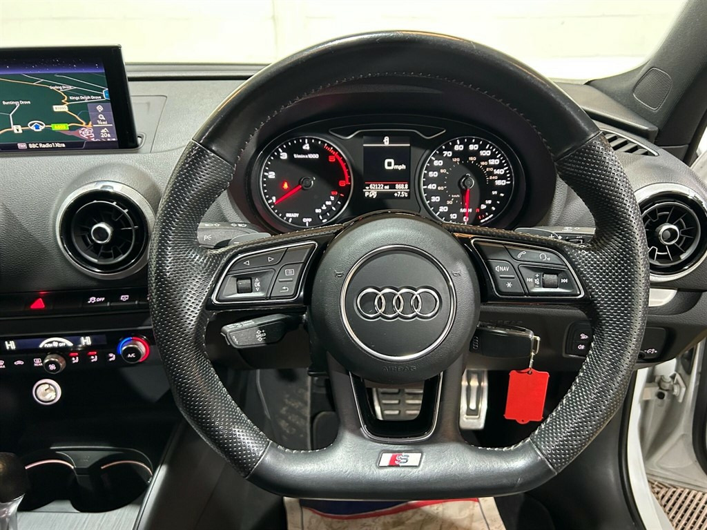 AUDI SERVICE HISTORY + LAST SERVICED AT 59000 MILES, This 2019 Audi A3 TDI Black Edition presents a compelling proposition with its remarkably low mileage of just 62,000 miles for its age. As a Euro 6 compliant model, this A3 is powered by an efficient 1.6 litre diesel engine, offering an impressive fuel economy of 53 miles per gallon. The Black Edition trim ensures a stylish appearance, complemented by LED headlights with dynamic rear indicators and LED rear lights. Inside, you'll find comfort and convenience with Dual Zone Electronic Climate Control and an auto dimming rear view mirror that incorporates light and rain sensors. Connectivity is seamless thanks to the Bluetooth interface, and parking is made easier with rear parking sensors. This Audi A3 stands out due to its favourable running costs, highlighted by its excellent fuel economy and low CO2 emissions, indicating it is more economical to run than many comparable vehicles. Furthermore, its placement in a low insurance group suggests that insuring this A3 could be more affordable. These factors, combined with its well maintained provenance and desirable Black Edition specification, make this Audi A3 a sensible and attractive choice for discerning drivers. 18in Alloy Wheels - 5-Arm Trapezoid Design Audi Sport - Gloss Anthracite Black - Diamond Cut Finish,2 x USB Charging Ports and 1 x AUX-IN,6-Airbag System with Knee Airbag for Driver,Aluminium Interior Elements,Anti Theft Locking Wheel Bolts,Anti-Theft Alarm,Audi Connect,Audi Connect Infotainment Services - 3 Month Trial,Audi Drive Select,Audi Smartphone Interface,Audi Sound System,Auto-Dimming Rear-View Mirror with Light and Rain Sensor,Black Styling Package,Bluetooth Interface,CD Drive,Chrome-Plated Exhaust Tailpipe Trim,Cloth Headlining in Black,Colour Drivers Information System - DIS,Cruise Control,DAB Digital Radio,Door Mirrors - Black Housing,Door Mirrors - Electrically Adjustable and Heated with Integrated LED Side Indicators,Dual-Zone Electronic Climate Control,ESC - Electronic Stabilisation Control inc ABS - ASR and EDL,Electric Windows - Front,Electromechanical Parking Brake,Electromechanical Power Steering,First Aid Kit and Warning Triangle,Front Centre Armrest,Front and Rear Floor Mats,Heated Windscreen Washer Jets,Hill Hold Assist,ISOFIX Child Seat Mounting and Top Tether,Illuminated Door Sill Trims with S Logo,Inlays - Matt Brushed Aluminium,LED Headlights with LED Rear Lights and Dynamic Rear Indicators,LED Interior Light Package,Lashing Points in Luggage Compartment,MMI Navigation - SD Card Based,MMI Radio Plus with 7in Electrically Retractable Colour MMI Screen,Model and Engine Technology Badges at Rear,Non-Smoking Package,Pedals - Brushed Stainless Steel,Privacy Glass,Rear Parking Sensors,S Line Badges on Front Wings,S Line Design Body Styling,Seat Belt Monitoring,Split Folding Rear Seat Bench - 60-40 or Fully,Sport Side Air Inlet Grille and Diffuser Insert,Sport Suspension,Steering Wheel - 3-Spoke Leather-Multifunction-Flat Bottomed-Shift Paddles,Storage Compartments in the Door Side Trims-Centre Console-Under Drivers Seat,Storage Package,Tool Kit,Tyre Pressure Warning Light,Tyre Repair Kit