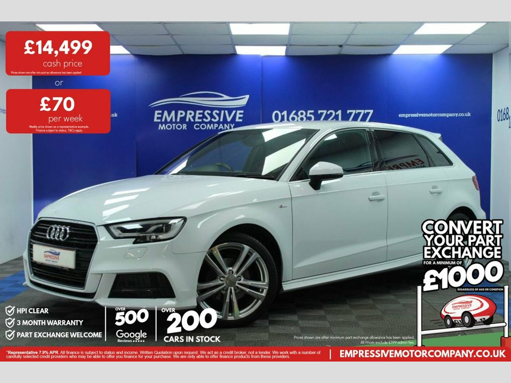 ****AWESOME AUDI A3**** Just in! This Stunning 2019 AUDI A3 1.6 TDI 30 S line Sportback 5dr Diesel Manual Euro 6 (s/s) (116 ps) Finished In White! 64,226 miles - 1.6L diesel - 6 speed manual - 18" diamond cut wheels - Automatic LED headlights - Parking sensors - Half leather S-line seats - Multi media interface system with sat nav - Bluetooth connectivity - USB - Aux - Wireless phone charging - Automatic 2 zone climate control - Election handbrake - Stat stop - Traction control - Eco mode - Sport mode - Voice control - Cruise control - Auto wipers - Electric heated wing mirrors 18in Alloy Wheels - 5-Parallel Spoke Des, 2 x USB Charging Ports and 1 x AUX-IN, 6-Airbag System with Knee Airbag for Dri, 8 Passive Loudspeakers, Aluminium Interior Elements, Aluminium Window Trims, Anti Theft Locking Wheel Bolts, Anti-Theft Alarm, Audi Connect Infotainment Services (3 Mo, Audi Drive Select, Audi Smartphone Interface, Audi Sound System, Auto-Dimming Rear-View Mirror, Bluetooth Interface, Body Coloured Door Mirrors, CD Drive, Chrome-Plated Exhaust Tailpipe Trim, Cloth Headlining in Black, Colour Drivers Information System - DIS, Cruise Control, DAB Digital Radio, Door Mirrors - Electrically Adjustable a, Dual-Zone Electronic Climate Control, Electric Windows - Front, Electro