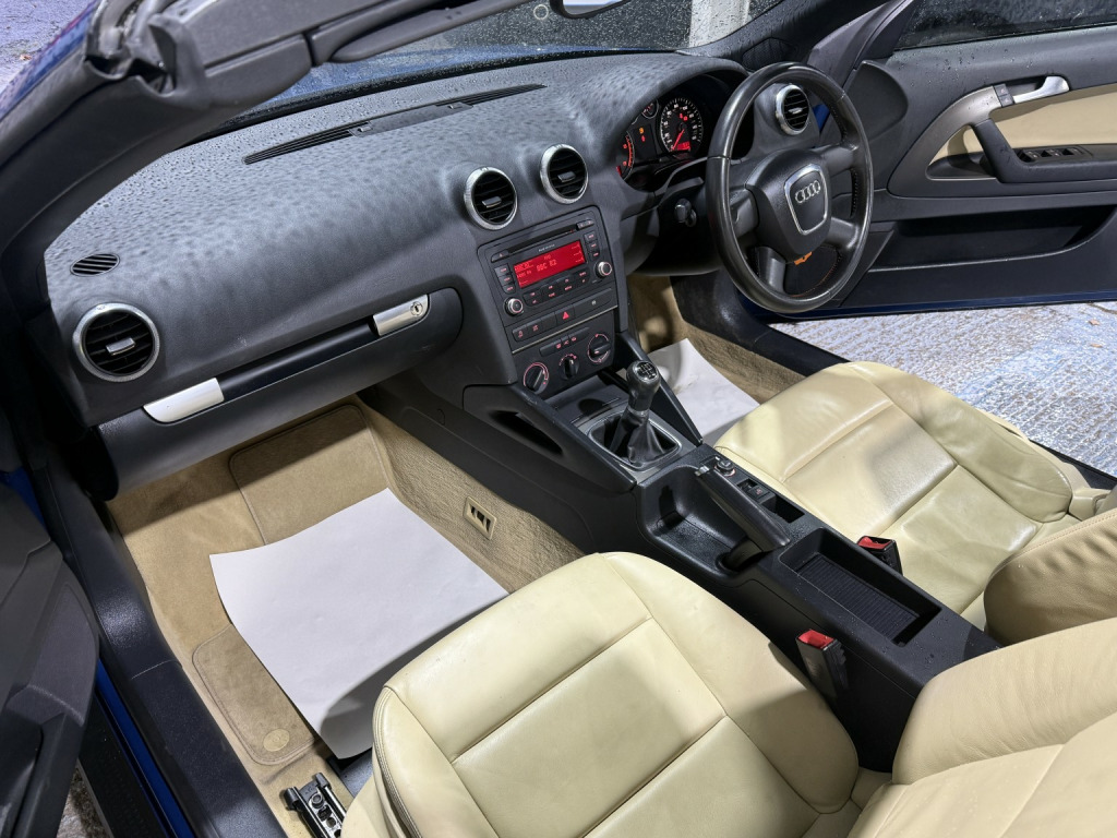 getaround in this immaculate 1.6 diesel A3 convertible from Audi. This 5-speed manual example has an ultra low mileage and it looks stunning finished in a gorgeous blue metallic with contrasting full beige leather interior. It has a good spec that includes power hood, rear parking sensors, electric windows, remote locking, alloy wheels and air-conditioning. The car has a comprehensive service history that is made up of some 8-dealer stamps and a long MOT. It comes with the owners book pack, fully stamped service booklet, two keys, locking wheel nut and clear HPi certificate. Phone, text or email for an appointment to view this lovely low mileage convertible soon.