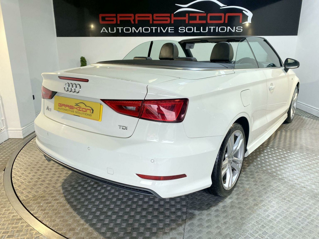 ONLINE AND PHONE ENQUIRIES ONLY ON SUNDAYS CALL 01302 457702 TO SPEAK DIRECTLY TO US. STUNNING AUDI A3 1.6 S LINE DIESEL CABRIOLET FINISHED IN WHITE WITH GREAT SERVICE HISTORY 7 SERVICES - THE LAST ONE CARRIED OUT AT 65,414 MILES AND HAS A FRESH MOT THAT RUNS UNTIL JANUARY 2027! SPECIFICATION INCLUDES 18 S LINE ALLOY WHEELS - FULL BLACK LEATHER HEATED SEATS - AUTOMATIC CLIMATE CONTROL - BLUETOOTH PHONE HANDS FREE - CRUISE CONTROL - RADIO/CD PLAYER - REMOTE CENTRAL DOOR LOCKING WITH 2 KEYS - ELECTRIC WINDOWS AND MIRRORS - TINTED GLASS - AUTOMATIC LIGHTS - 6 SPEED GEARBOX AND FACTORY ALALRM AND IMMOBILIZER. A FULLY HPI CLEAR CAR WITH CERTIFICATE PROVIDED. TO VIEW AND DRIVE AWAY TODAY CALL 01302 457702. NO ADMIN FEES (EXCEPT BROKERS).